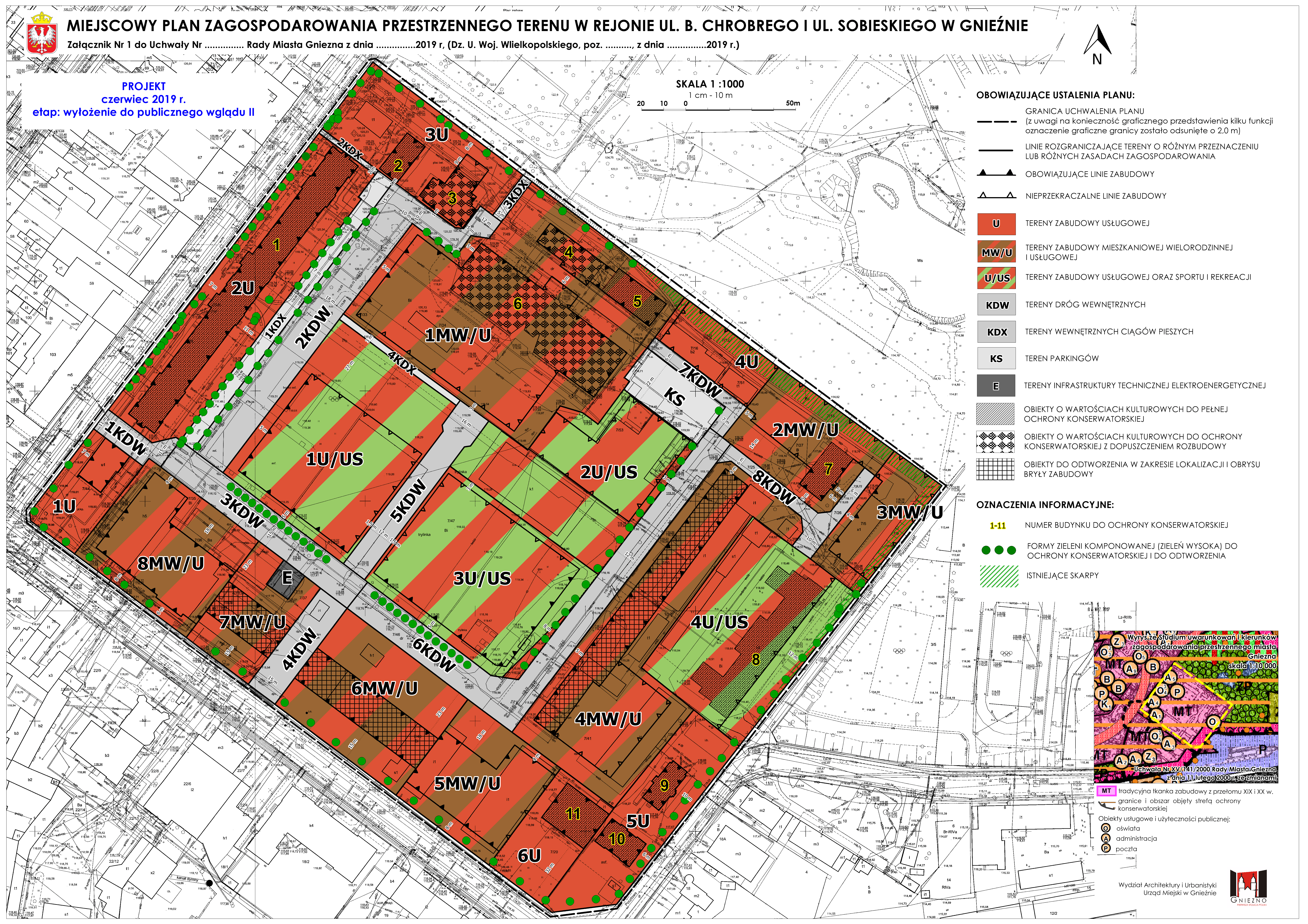 Miejscowy plan zagospodarowania przestrzennego terenu w rejonie ul. B. Chrobrego i ul. Sobieskiego w Gnieźnie - projekt rysunku (wyłożenie II)