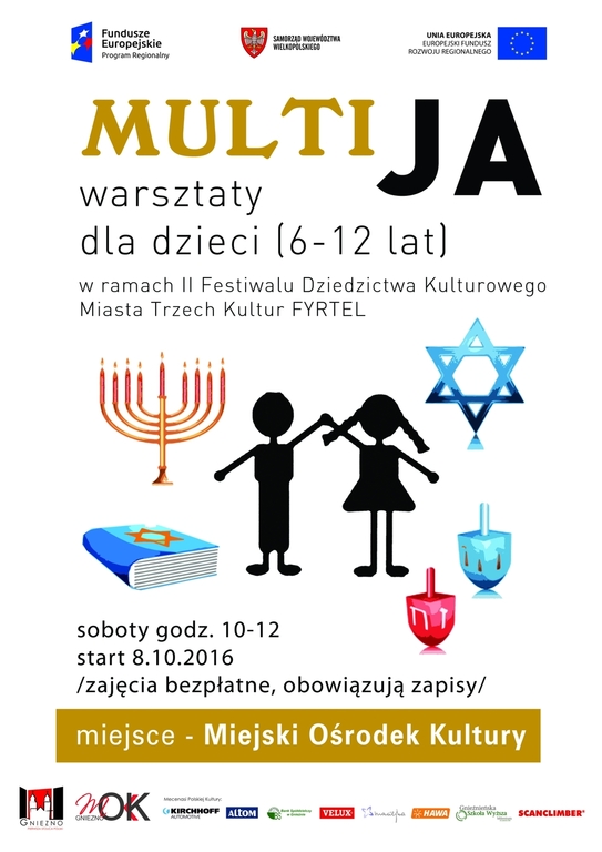 Zapraszamy serdecznie na warsztaty „Multi ja” w ramach II Festiwalu Dziedzictwa Kulturowego Miasta Trzech Kultur Fyrtel w Gnieźnie. Odbiorcami projektu są wszystkie dzieci oraz młodzież w wieku od 6 do 12 lat (także dzieci niesłyszące i niewidome).