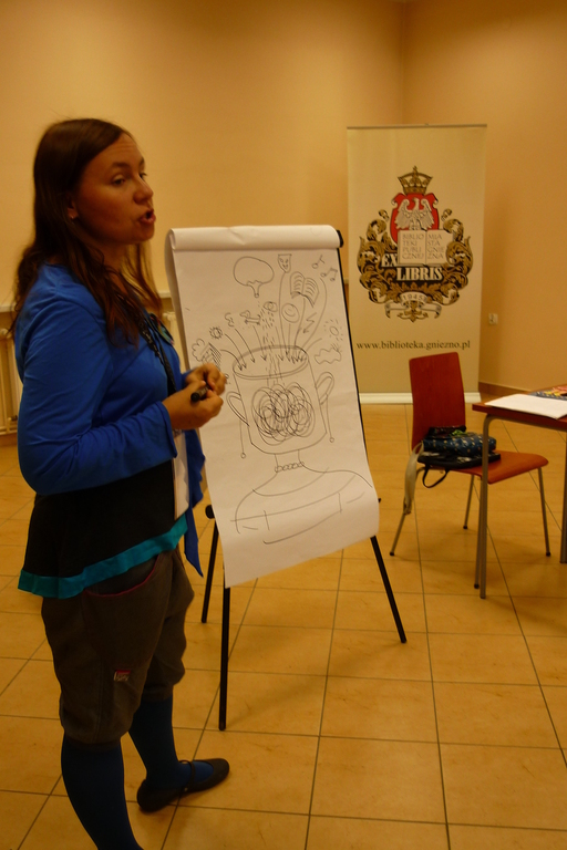 Zofia Stanecka podczas spotkania przekazała dzieciom wiele cennych informacji o procesie powstawania książki i ludziach, którzy ją współtworzą - od momentu pojawienia się pomysłu w głowie pisarza aż po pojawienie się książki w księgarni i w bibliotece. Wprowadzając i objaśniając różne terminy, posługiwała się konkretnymi przykładam książek. Pisarka przeczytała też kilka fragmentów przyniesionych ze sobą pozycji, co stało się punktem wyjścia do rozmaitych ćwiczeń.
