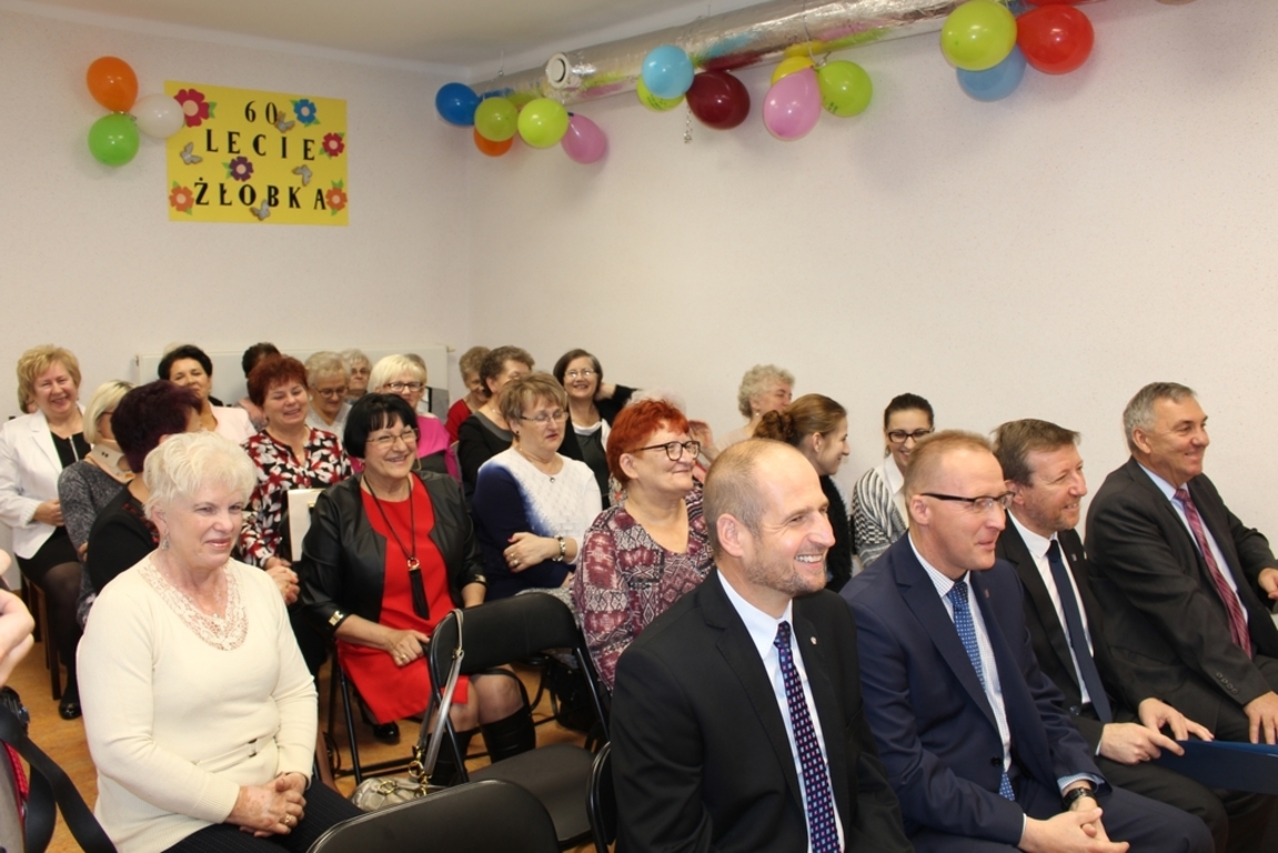 Z okazji jubileuszu sześćdziesięciolecia Żłobka Miejskiego prezydent Tomasz Budasz oraz jego zastępca Michał Powałowski wręczyli medale koronacyjne dyrektor Ewie Kluczyńskiej oraz emerytowanym, wieloletnim pracownikom placówki: Janinie Osińskiej, Zenobii Kosznik i Krystynie Duras oraz dyplomy uznania dla 18 emerytowanych pracowników.