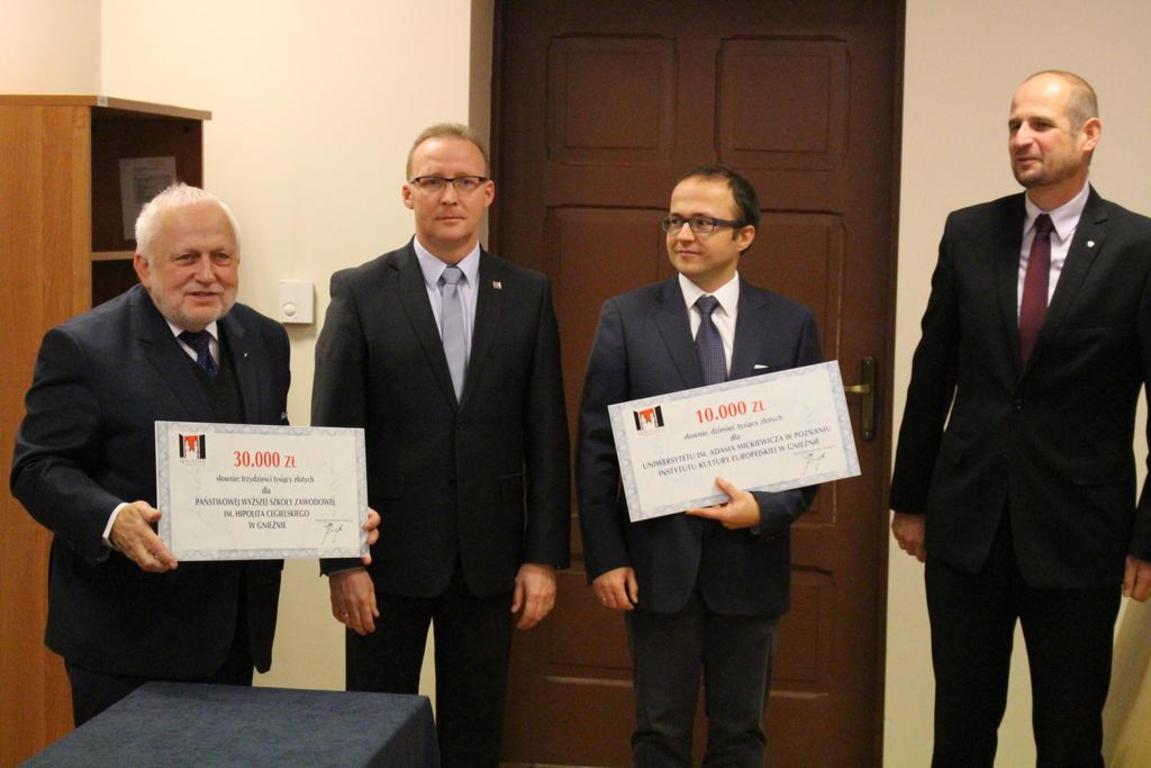 Ponadto uczelnie wyższe otrzymały dotacje celowe. Państwowa Wyższa Szkoła Zawodowa w wysokości 30.000 zł, na współfinansowanie doposażenia pracowni specjalistycznych dla kierunków Pielęgniarstwo i Fizjoterapia. Uniwersytet im. Adama Mickiewicza w Poznaniu Instytut Kultury Europejskiej otrzymał dotację w wysokości 10. 000 złotych na współfinansowanie serii wydawniczej "Acta Humanistica Gnesnensia ".