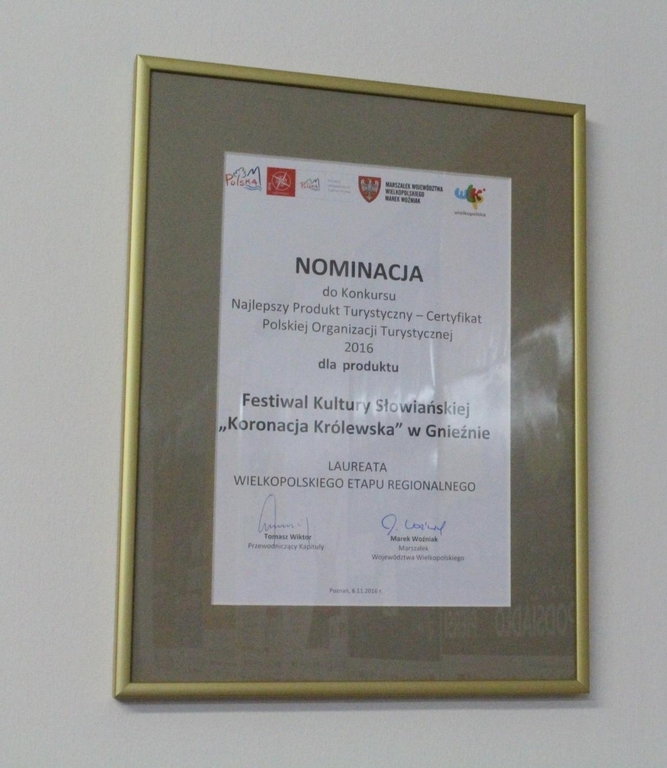 Festiwal Kultury Słowiańskiej został wyróżniony. Koronacja Królewska, wydarzenie, które już na stałe wpisało się w letni kalendarz imprez w Gnieźnie po raz kolejny zostało laureatem etapu regionalnego, a tym samym jest nominowane etapu ogólnopolskiego Polskiej Organizacji Turystycznej na Najlepszy Produkt Turystyczny 2016 roku .