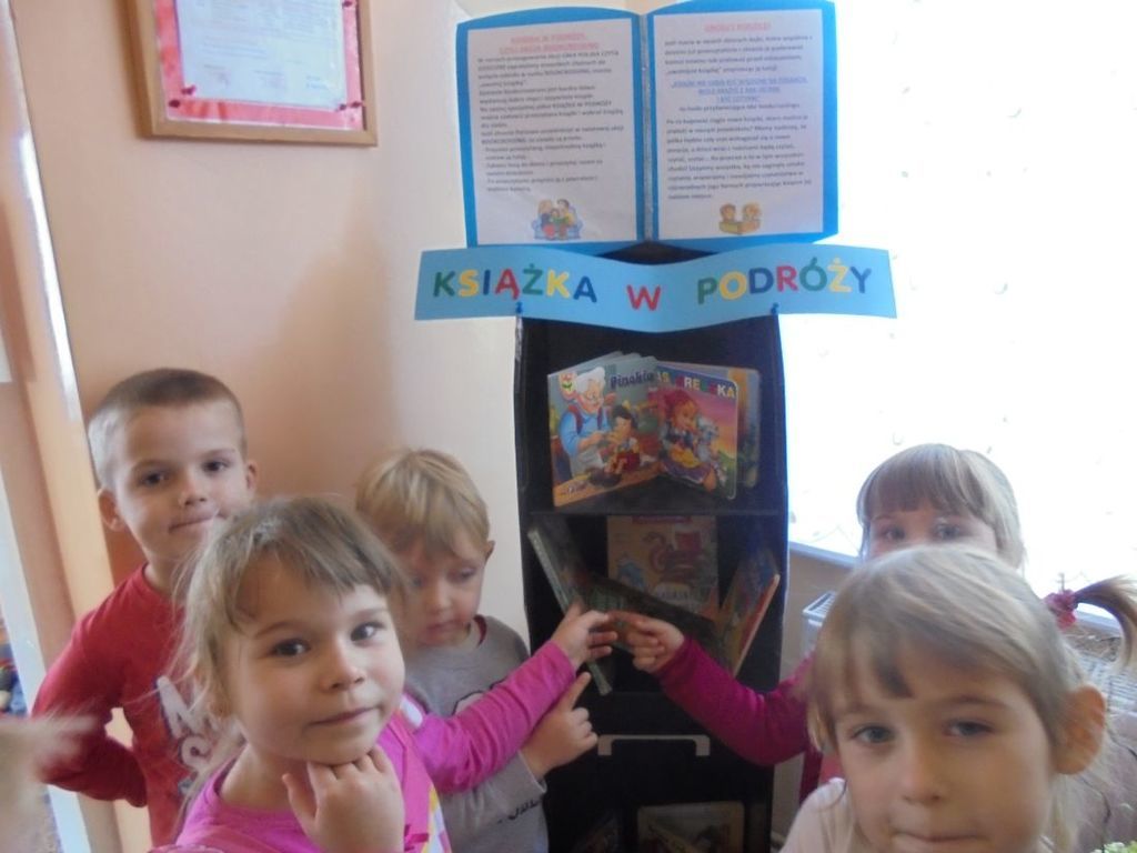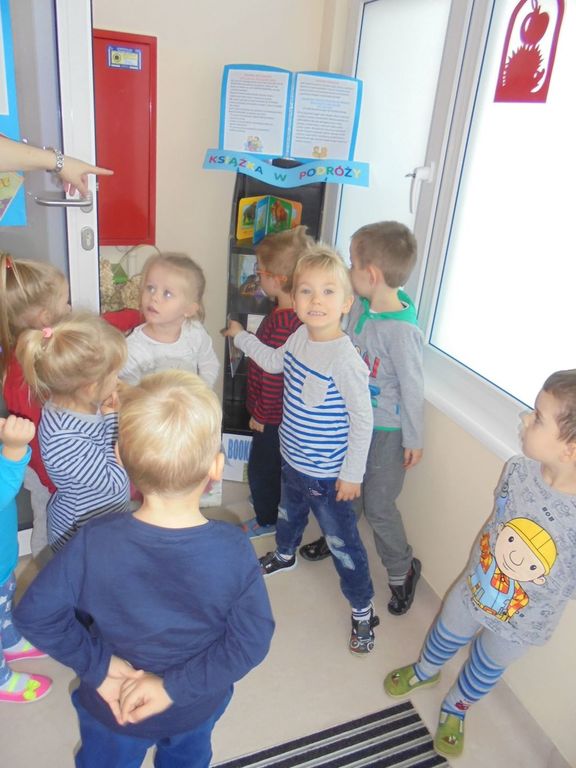 W holu głównym i drugim wejściu przedszkola stanęły specjalne półki „Książka w podróży” wraz z informacją dla rodzin przedszkolaków na temat zasad jej funkcjonowania. Można tu zostawić przeczytane książki i wybrać dla siebie inne pozycje, przeczytać je wraz ze swoim dzieckiem, a następnie „uwolnić książkę” odkładając ją na regał w naszym przedszkolu.