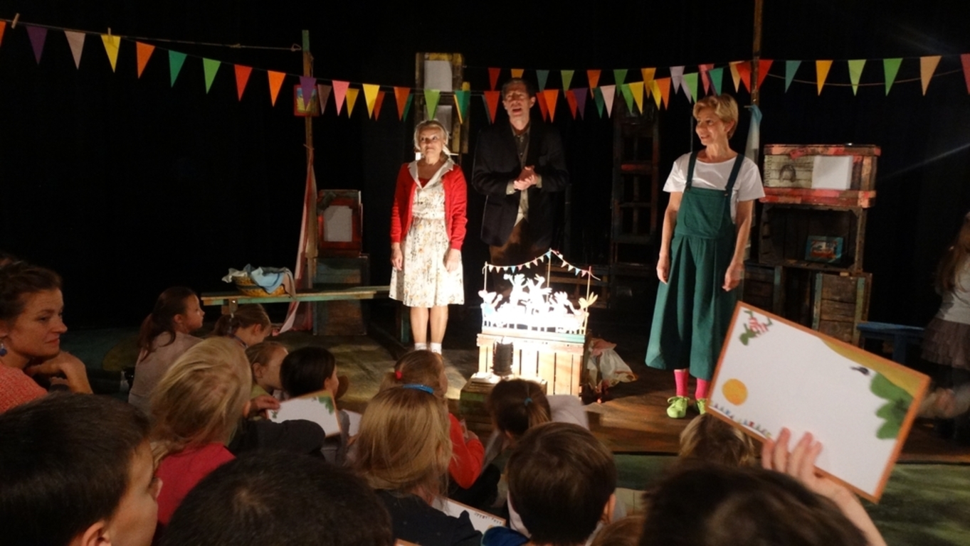 „Żabka” została zrealizowana w konwencji teatru cieni, ale nie były to, jak można sobie wyobrazić, czarne cienie pokazywane na białych prześcieradłach. Kukiełki były bowiem kolorowe! Tkaniny, na których obserwowano cienie, były rozwieszane, przewieszane i zmieniane na oczach widzów. A w zależności od tego, w jakiej odległości od źródła światła były kukiełki, zmieniała się ich wielkość. Można było uwierzyć, że to wszystko dzieje się naprawdę!