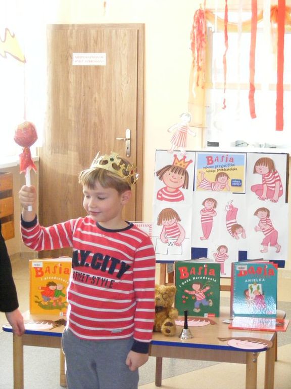 Ważnym punktem „pasiastego” spotkania było głośne czytanie książki „Basia i wolność” Zofii Staneckiej przez Pawła Bąkowskiego ze Stowarzyszenia „Ośla Ławka”. Dzieci zaś miały okazję wcielić się w postaci bohaterów książki: Basię i Janka i... zmierzyć się z sytuacjami niewłaściwego zachowania, bądź niebezpiecznej sytuacji. Na koniec każdy chętny został koronowany i mógł wydać jedno ważne dla niego zarządzenie.