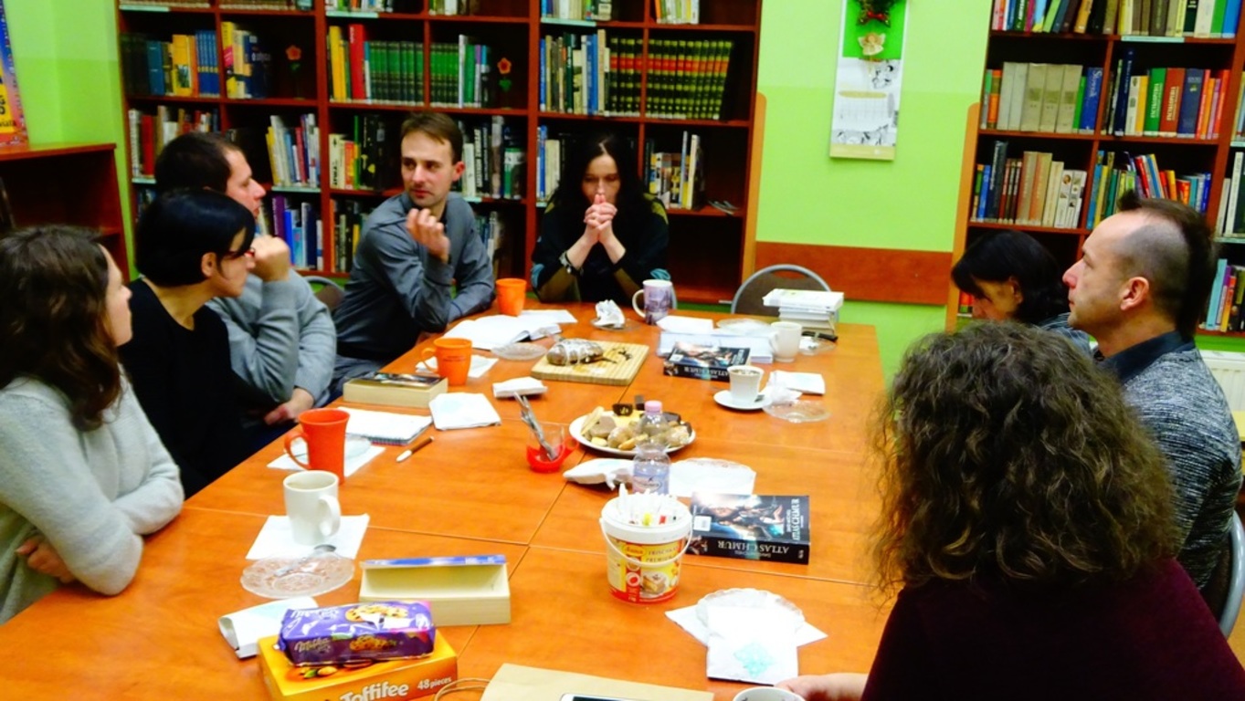 Ostatnie w tym roku spotkanie z książką, właśnie za nami. Jego tematem był "Atlas chmur" Davida Mitchella. I gdyby powiedzieć, że tytuł się spodobał, to powiedzieć zbyt mało. Zasłużone podziękowania otrzymała Izabela Budzyńska, która książkę zaproponowała. "Atlas chmur" to wspaniała konstrukcja i wyjątkowy język. To sześć niezwykłych kreacji językowych i stylistycznych. To dzieło zaskakujące i naprawdę piękne. Autor w niezwykle ujmujący sposób opowiada o prostych w zasadzie prawdach. Zachwyca i jednocześnie zmusza do refleksji. Klubowicze zwrócili również uwagę na książkową adaptację filmową, która w żaden sposób nie umniejsza jej literackich wartości. Co więcej, stanowi doskonałą zachętę do zapoznania się z wersją drukowaną.