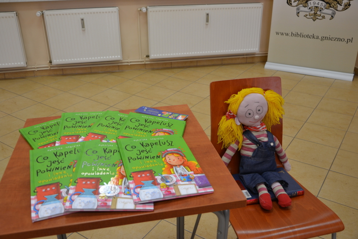 Wspaniałym wydarzeniem w Bibliotece Publicznej Miasta Gniezna było spotkanie z Agnieszką Gadzińską. Autorka na co dzień jest instruktorem do spraw kulturalno - oświatowych w Domu Kultury w Łubowie. W 2014 roku zadebiutowała w świecie literatury dla dzieci powieścią „Sklota i reszta świata”, opisującą perypetie i przygody sześcioletniej dziewczynki. Potem ukazały się: „ Niemałe kłopoty Matyldy i Skloty”, „Wielkie odkrycia Matyldy i Skloty”, „Figle i psoty Kaktusa i Skloty”, „Ostatni krzyk mody”, „Duch potrzebny od zaraz”, „Lekarstwo na krowę i inne opowiadania”.