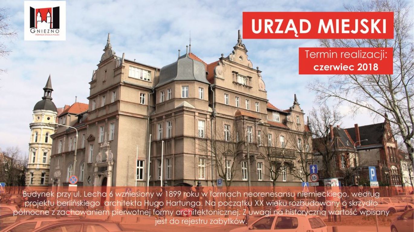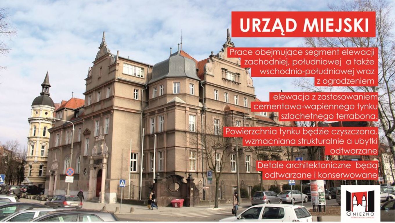 W zeszłym roku 3 kamienice, w tym roku 5 i Urząd Miejski. Miasto Gniezno kontynuuje remonty elewacji miejskich kamienic. Co więcej, do tego samego zachęcani będą właściciele prywatnych kamienic, w trakcie przygotowywania jest uchwała, która ma ich do tego zachęcić.