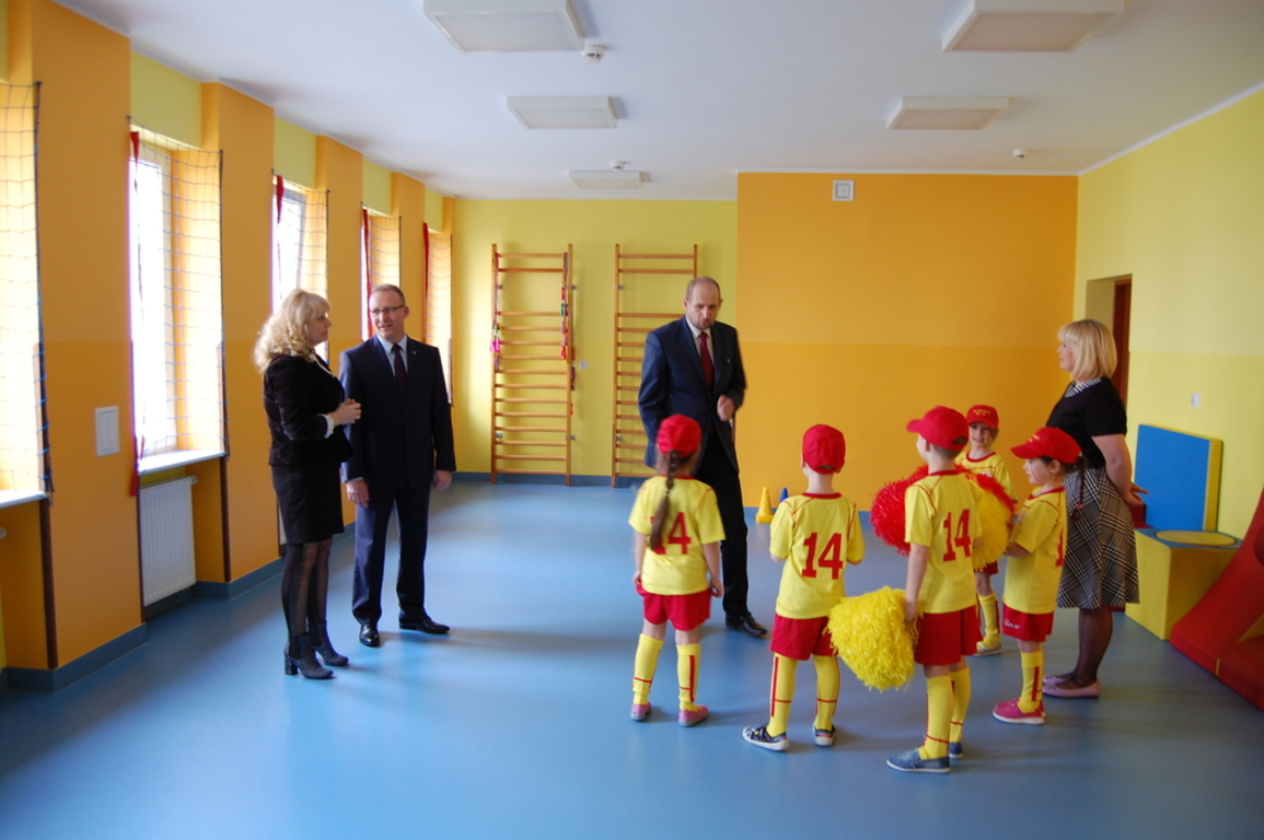 Od początku marca dzieci z Przedszkola nr 14 "Mali Piastowie" mają wspaniałe warunków do ćwiczeń gimnastycznych i zabaw ruchowych, a to za sprawą nowej sali gimnastycznej. Sala jest wyposażona w sprzęt sportowy dostosowany do wieku przedszkolnego. Zajęcia ruchowe są wielką atrakcją dla dzieci, które bardzo chętnie i z radością wykonują ćwiczenia. W środę 8 marca uroczystego otwarcia sali dokonał prezydent Gniezna Tomasz Budasz, jego zastępca Michał Powałowski, dyrektor przedszkola Goretta Hanczewska oraz dzieci z grupy Skotnicy.