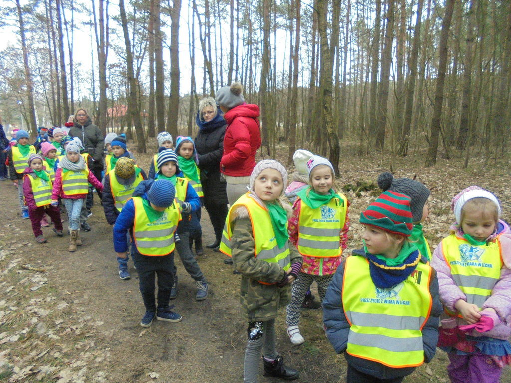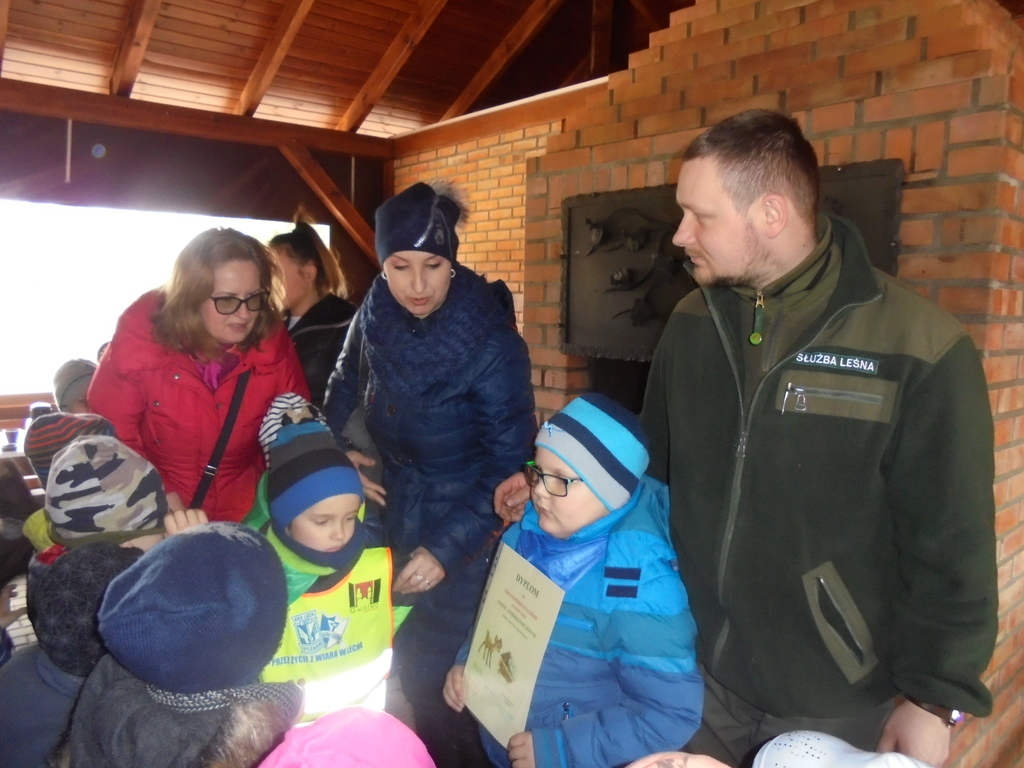 Dzieciom przypomniano, że należy chronić przyrodę, w lesie zachowywać się cicho - tak, aby nie płoszyć zwierzyny. Na koniec przedszkolacy otrzymali Dyplom za udział w akcji: „pomóż zwierzętom leśnym”. Wszyscy udali się na krótki spacer, podczas którego obserwowano różne gatunki drzew liściastych i iglastych. Wycieczka była atrakcyjną formą spędzenia wolnego czasu na łonie natury i okazją do obserwacji budzącej się do życia przyrody w nadchodzącej, nowej porze roku.