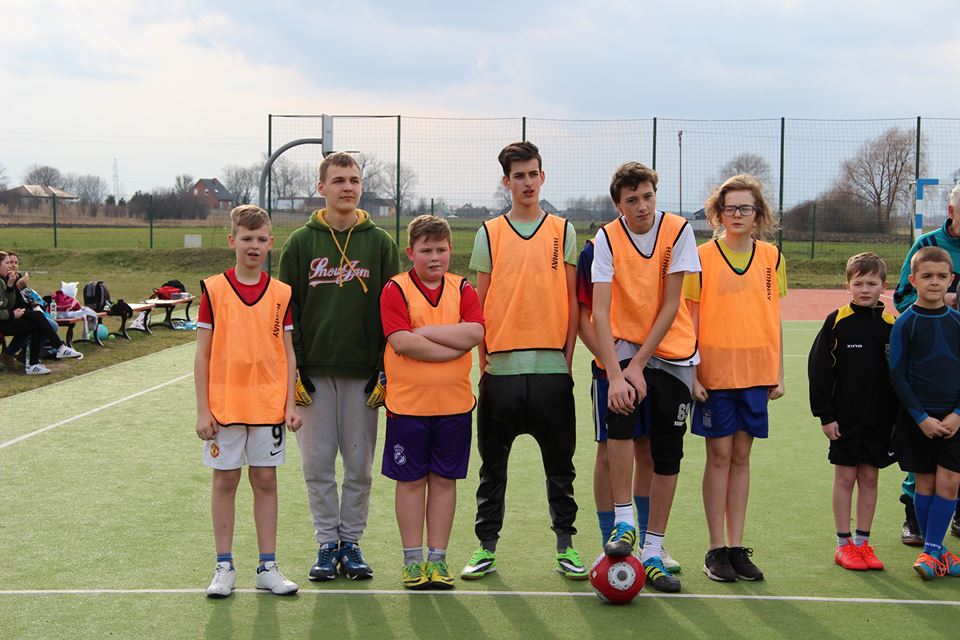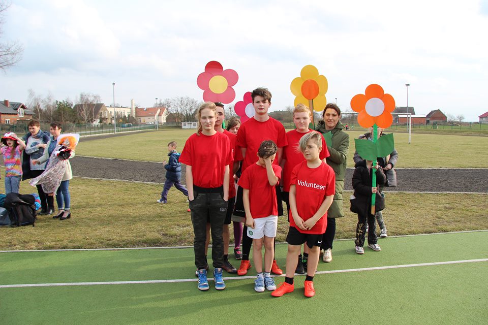 Na sportowym spotkaniu młodych piłkarzy nie zabrakło również wiosennych akcentów wśród kibiców: była Marzanna, kolorowe przebrania w kwiaty oraz okrzyki radości zachęcające zawodników do sportowego wysiłku.