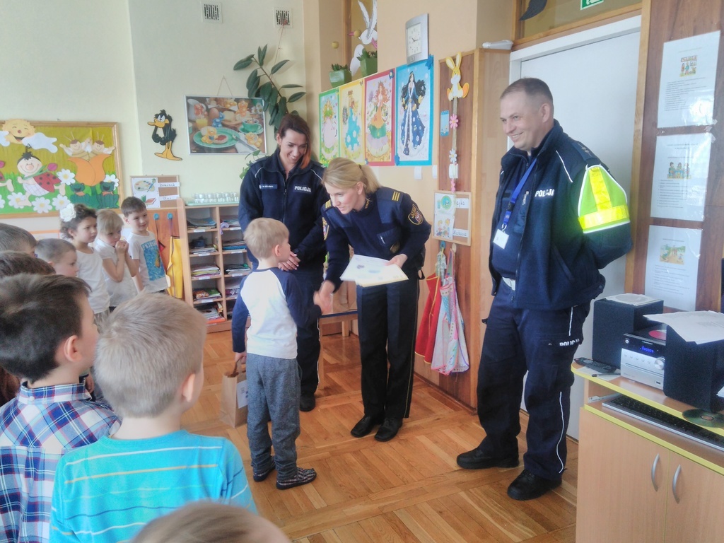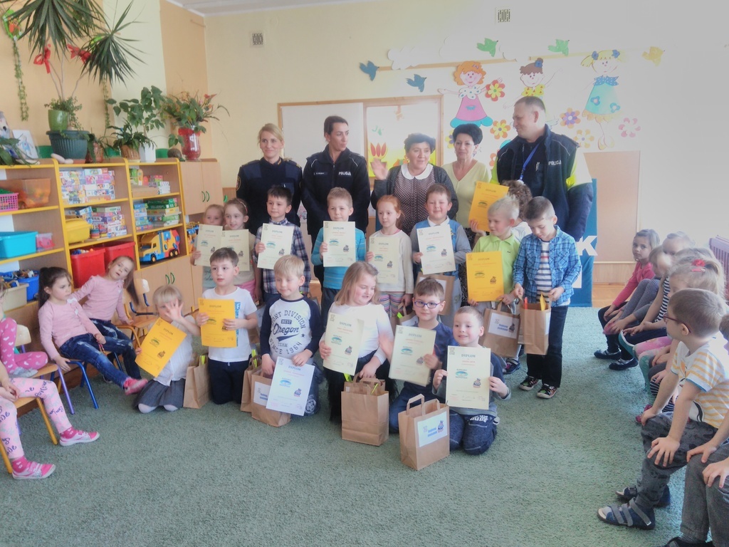 Podczas świetnie zorganizowanego przez pedagogów konkursu milusińscy wykazywali się ogromną wiedzą na temat zasad bezpiecznego poruszania się po drogach samochodami, rowerami, a także podczas spacerów z rodzicami i opiekunami. Komisja konkursowa składająca się z funkcjonariuszy Straży Miejskiej i Policji była pod wrażeniem wiedzy dzieci w wieku przedszkolnym. Opowieści dzieci, jak to właśnie osoby dorosłe nie przestrzegają przepisów prawa o ruchu drogowym były bardzo zabawne. Konkursy, zabawy i nagrody przysporzyły dzieciom wiele wrażeń i uśmiechu na twarzy, bo przecież nauka przez zabawę od najmłodszych lat daje wymierne efekty.