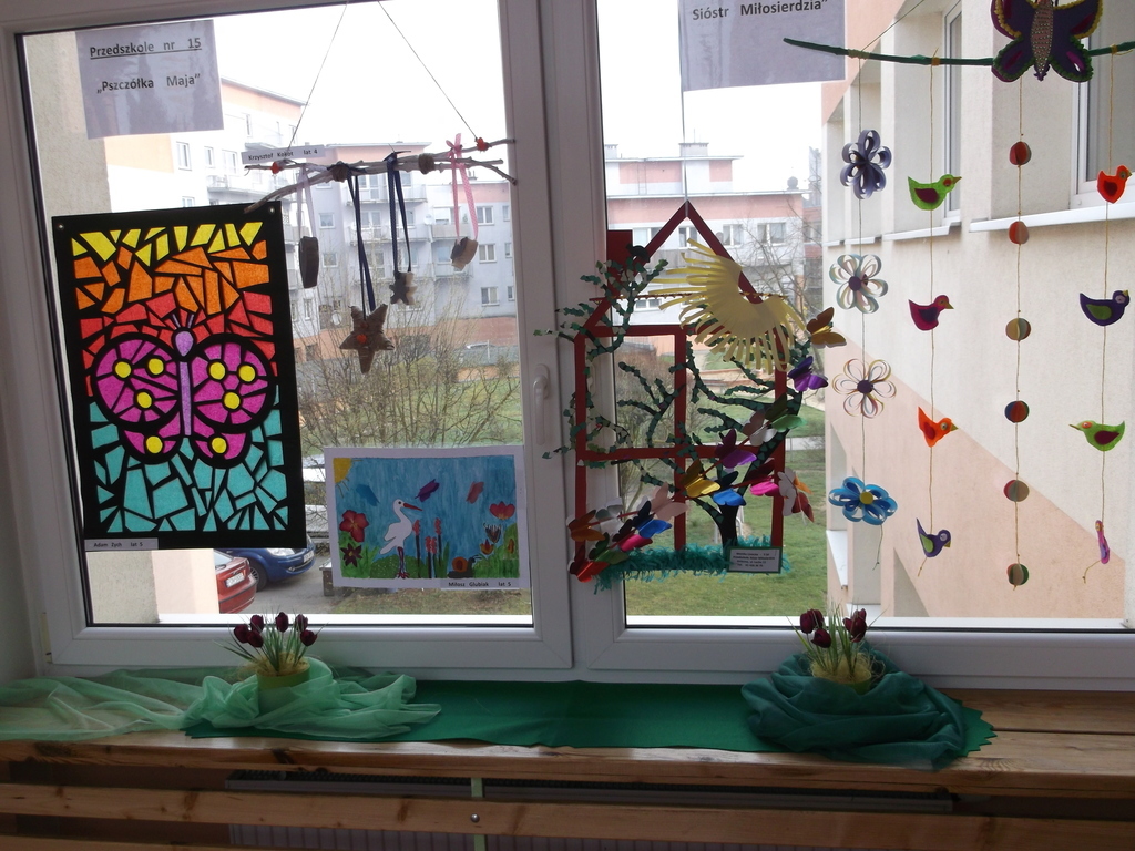 31 marca 2017 roku w Przedszkolu nr 1 ,,Wesołe Nutki” odbyło się podsumowanie konkursu plastycznego „Wiosenne dekoracje okienne”. Celem konkursu było rozwijanie wyobraźni artystycznej, kreatywności, innowacyjności wśród dzieci, a także stwarzanie możliwości wymiany doświadczeń artystycznych oraz integracja społeczności lokalnej. Konkurs był przeznaczony dla udział dzieci od 3 do 5 lat, uczestniczyło też kilkoro dzieci sześcioletnich.