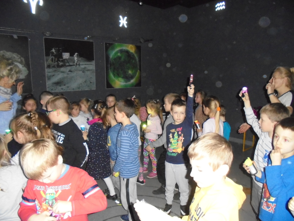 Przedszkolaki dowiedziały się także od swoich pań - Ani i Basi wielu ciekawostek na temat gwiazdozbiorów, meteorytów, pojazdów kosmicznych, a wspólne zabawy z rekwizytami: „Deszcz meteorytów”, „Świecące gwiazdy”, „Kosmita” stymulowały kreatywność i wyobraźnię dzieci oraz uatrakcyjniły zajęcia. Zorganizowana wycieczka miała na celu rozbudzić zainteresowania astronomią już od najmłodszych lat i zachęcić dzieci do własnych obserwacji rozgwieżdżonego nieba.
