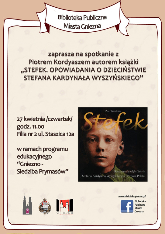 Na dyskusję o książce z jej autorem zaprasza Biblioteka Publiczna Miasta Gniezna. Spotkanie odbędzie się 27 kwietnia 2017 (czwartek) o 11.00 w Filii nr 2 ul. Staszica 12a w ramach programu edukacyjnego „Gniezno - Siedziba Prymasów”.