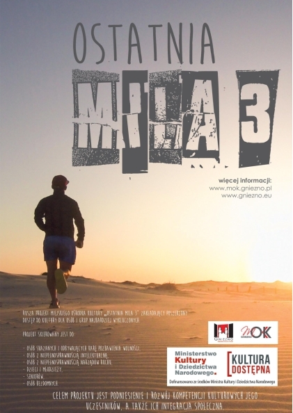 Jedną z podstawowych potrzeb każdego człowieka jest uczestnictwo w kulturze. Nie każdy ma jednak do niej równy dostęp. Niepełnosprawność, status społeczny czy wiek często utrudniają korzystanie z jej owoców. Aby przeciwdziałać takiemu wykluczeniu, Miejski Ośrodek Kultury już po raz trzeci realizować będzie specjalny projekt dofinansowany ze środków zewnętrznych. „Ostatnia mila 3”, bo taka jest nazwa działania, prowadzony będzie od maja do listopada 2017 roku.