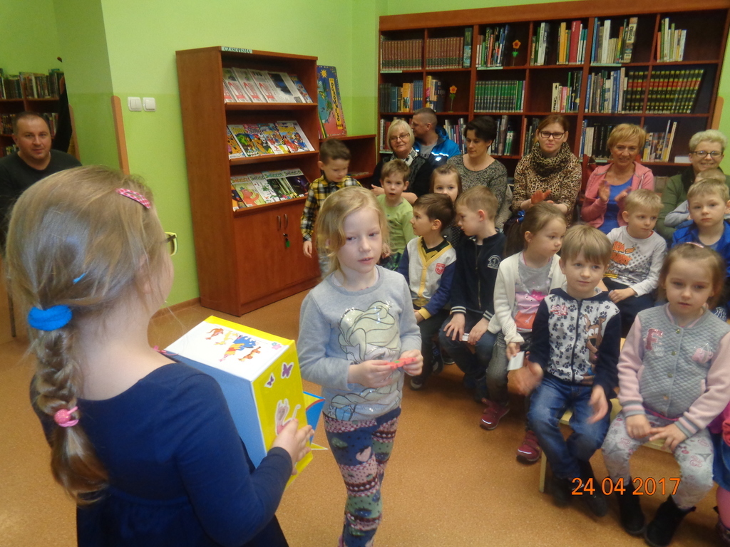 Goście mieli możliwość zwiedzenia biblioteki i zapoznania się z księgozbiorem. Chętnie brali udział w konkursach i zabawach czytelniczych. Przygotowany program był na tyle bogaty, że zachęcił rodziców do zapisania swoich dzieci do biblioteki. Przedszkolacy otrzymali swoje pierwsze legitymacje. Biblioteka okazała się przyjazną przestrzenią dla dzieci i rodziców.
