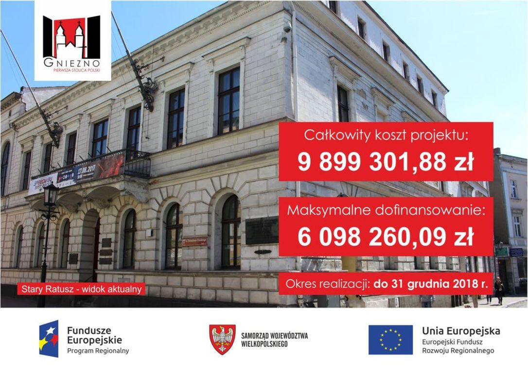 Miasto Gniezno zrealizuje projekt „Renowacja i adaptacja na cele kulturalne zabytkowego Ratusza w Gnieźnie”, na który Zarząd Województwa Wielkopolskiego przyznał ponad 6 mln zł dofinansowania z WRPO 2014+. Dofinansowanie zostało przyznane w trybie pozakonkursowym w ramach Poddziałania 4.4.1 „Inwestycje w obszarze dziedzictwa kulturowego regionu”. W sumie do dofinansowania wybrano 5 projektów pozakonkursowych, których całkowita wartość wynosi około 43 mln zł, w tym kwota dofinansowania z WRPO 2014+ wynosi około 30 mln zł.