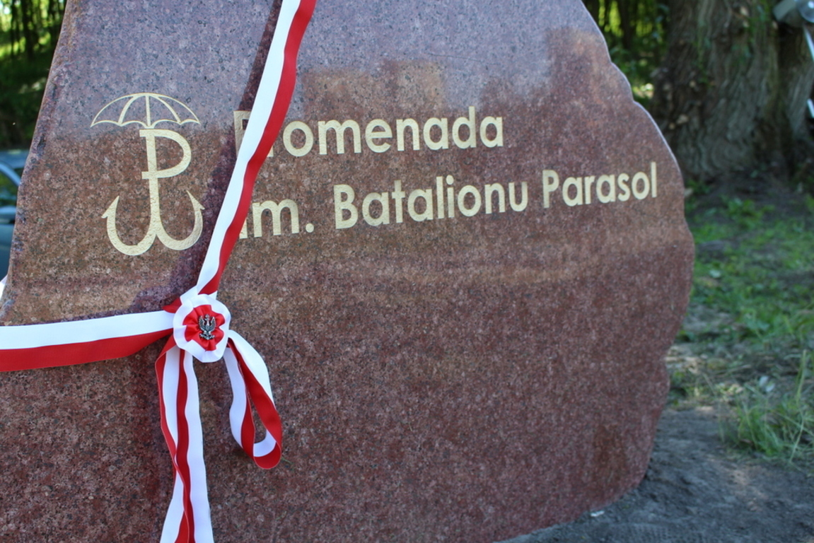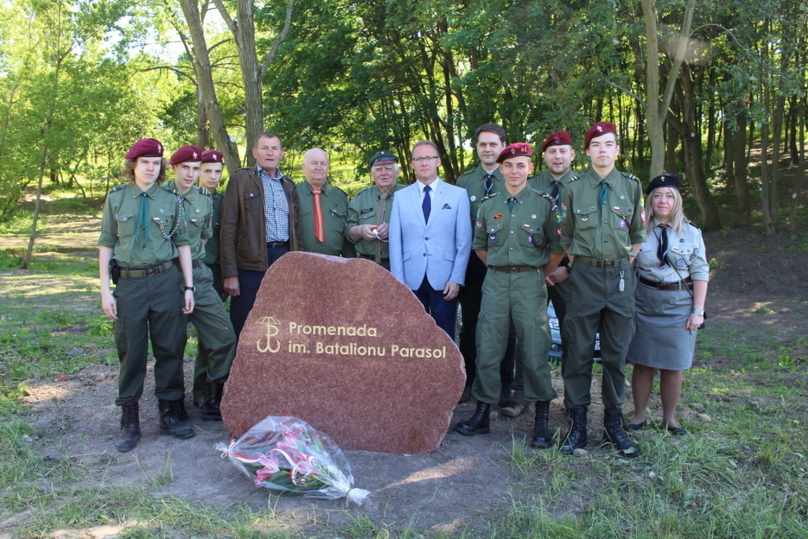 Natomiast 27 maja 2017 roku odsłonięty został specjalny obelisk, a promenada wokół jeziora Winiary otrzymała imię Batalionu Parasol. W obchodach związanych z odsłonięciem obelisku wzięli również udział członkowie Klubu Ekologicznego Koło Gniezno, którzy jako imprezę towarzyszącą zorganizowali rajd rowerowy. Zakończył się on kolorowym festynem w Szkole Podstawowej nr 9.