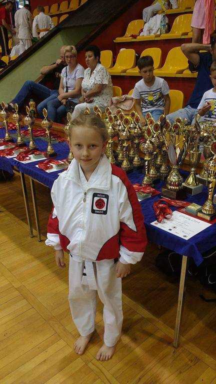 Bardzo blisko pozycji medalowej była też jej koleżanka z Klubu Alicja Kaszyńska, walcząca w tej samej konkurencji, która przegrała walkę o trzecie miejsce i znalazła się tuż za podium. Adrian Turonek w konkurencji kihon wywalczył brązowy medal. Bardzo ładnie zaprezentowały się także Alicja i Jolanta w konkurencji kata indywidualne dziewcząt 8-9 lat, gdzie mimo wygranych pierwszych walk nie dotarły do finałów. Hubert Wiśniewski startujący w najliczniejszej konkurencji kata indywidualne chłopców 8-9 lat także wrócił to domu bez medalu.
