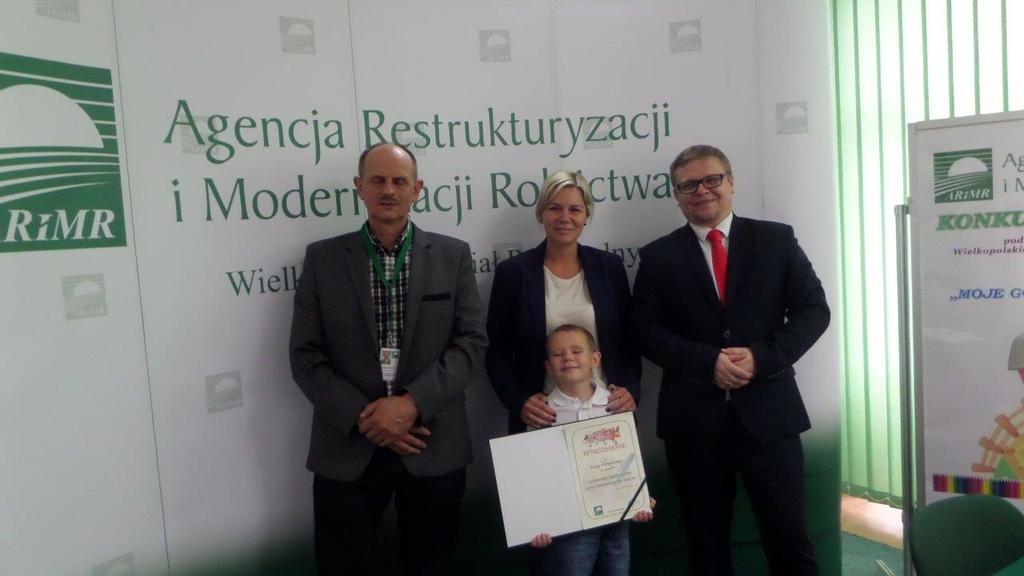 Patryk Wojciechowski z Przedszkola nr 14 „Mali Piastowie” w Gnieźnie otrzymał wyróżnienie w konkursie plastycznym „Moje gospodarstwo rolne” organizowanym przez Wielkopolski Oddział Regionalny Agencji Restrukturyzacji i Modernizacji Rolnictwa w Poznaniu. Uroczysta gala wręczenia nagród i wyróżnień odbyła się 31 maja 2017 roku. Honorowy patronat nad wydarzeniem objął Wielkopolski Kurator Oświaty.