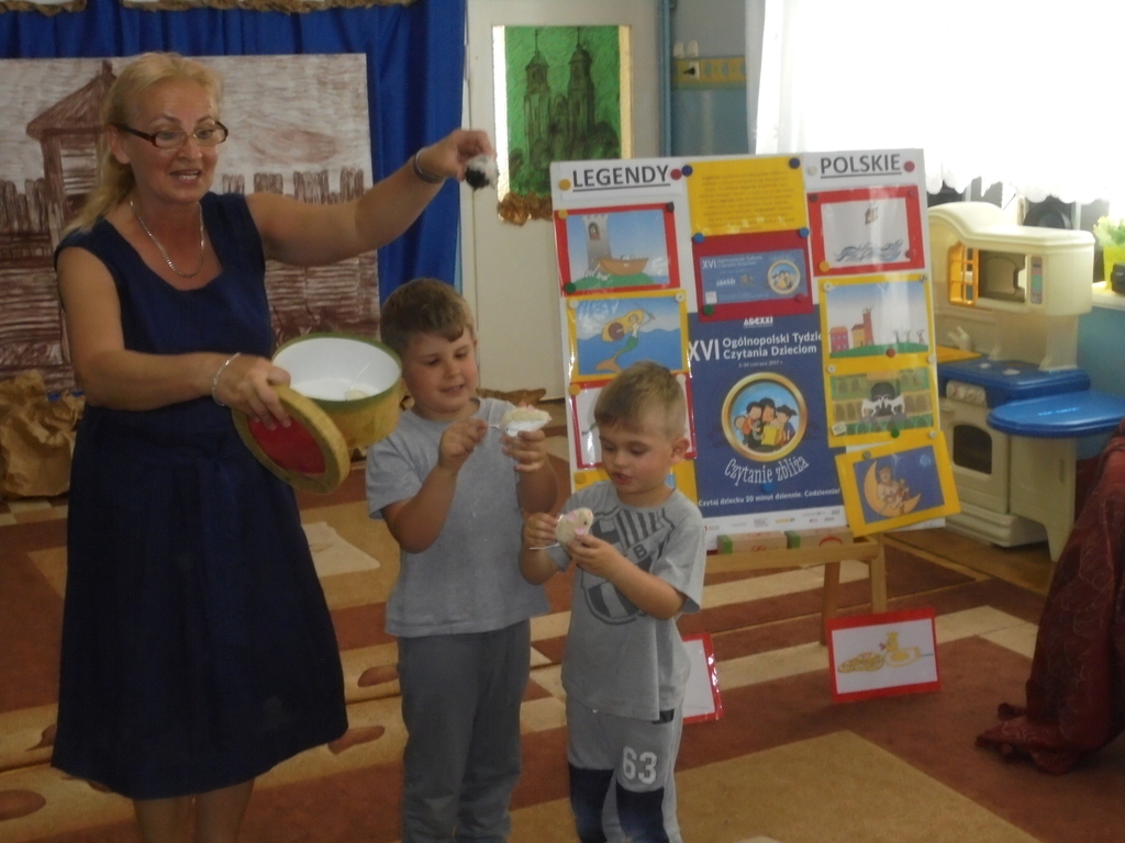 Czytający dorośli i wszystkie dzieci obdarowane zostały naklejkami motywującymi, a starsze przedszkolaki otrzymały specjalnie wydane na tę okazję okolicznościowe pisemko „Polne Kwiaty” - „Kocham czytać legendy polskie” do wspólnego czytania w przedszkolu i w domu z rodzinami.