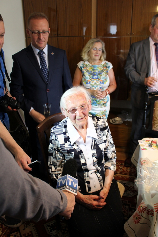 Z życzeniami zdrowia i wszelkiej pomyślności z okazji setnych urodzin gnieźnianki Marty Budzyńskiej, które przypadają 4 lipca, wybrali się liczni goście, w tym przedstawiciele władz miasta. Nie zabrakło także odśpiewania symbolicznego „Dwieście lat”,