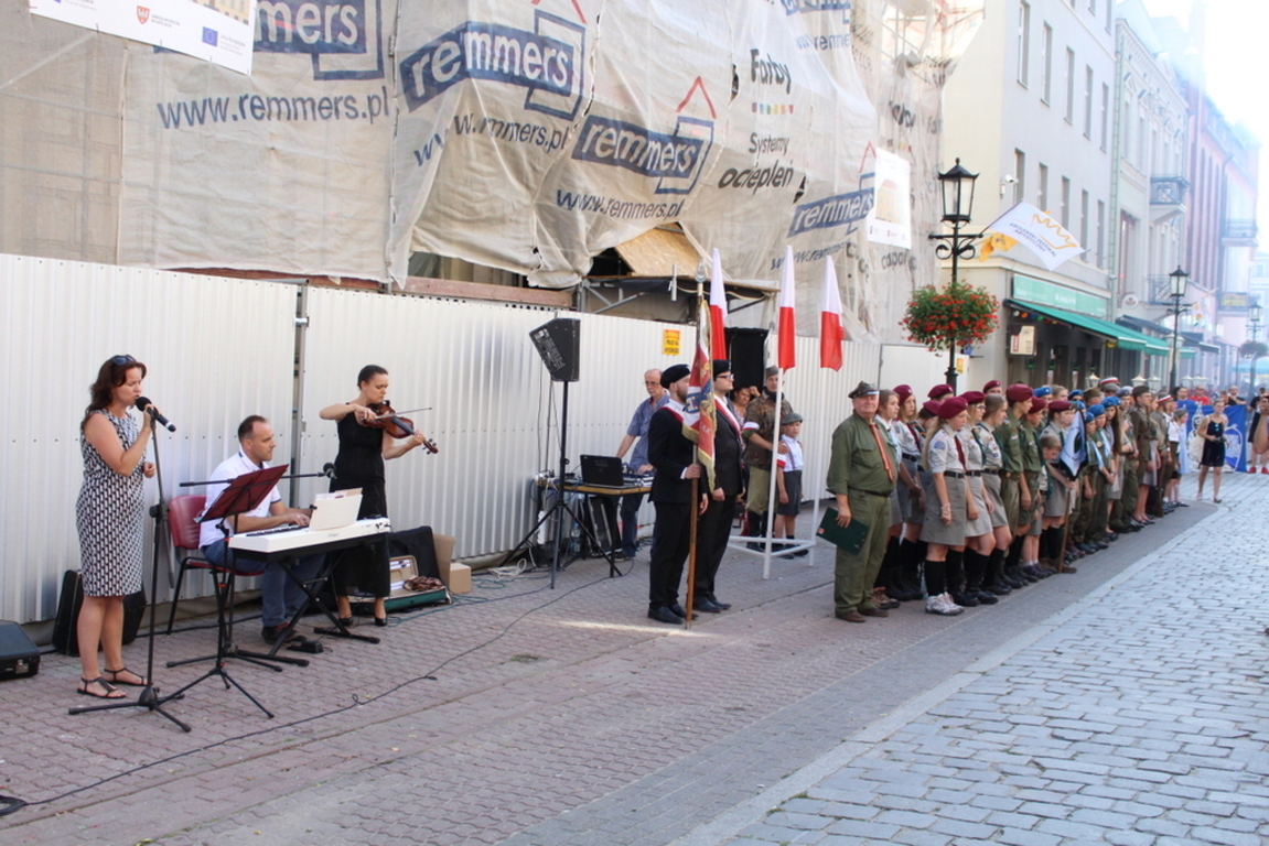 Wspomniano tam między innymi o trzech harcerzach pochodzących z Gniezna, którzy brali udział w powstaniu warszawskim. Poprzez złożenie kwiatów i zniczy pod pomnikiem oddano hołd poległym w trakcie jego przebiegu młodym obywatelom. Godzinę „W” przy rozbrzmiewających syrenach upamiętniono też pod gnieźnieńskim ratuszem. Zgromadzeni w tym miejscu mieszkańcy, turyści oraz wszyscy uczestniczący wcześniej w przemarszu, po zakończonych oficjalnie obchodach, wzięli udział we wspólnym śpiewaniu pieści patriotycznych.