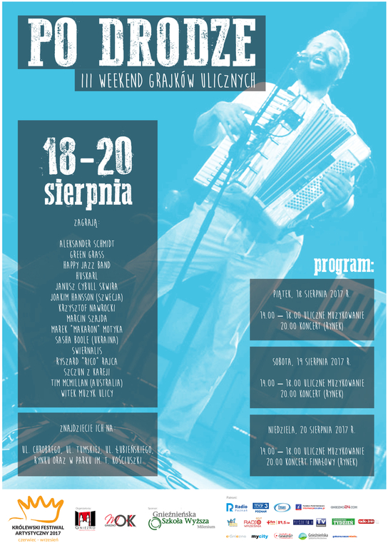 Gniezno powoli wraca do siebie po dotkliwej w skutkach nawałnicy, powracają więc również wydarzenia Królewskiego Festiwalu Artystycznego: muzycy ulicy już po raz trzeci spotkają się w Pierwszej Stolicy Polski w ramach Weekendu Grajków Ulicznych „Po drodze”.