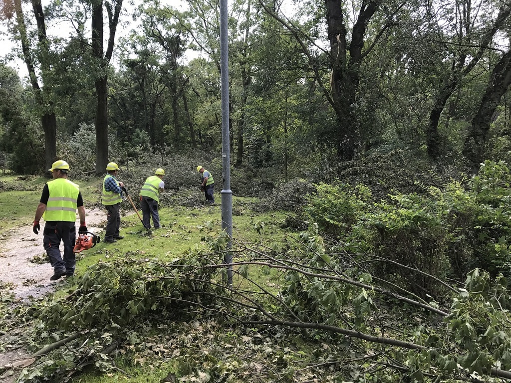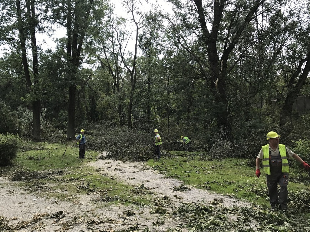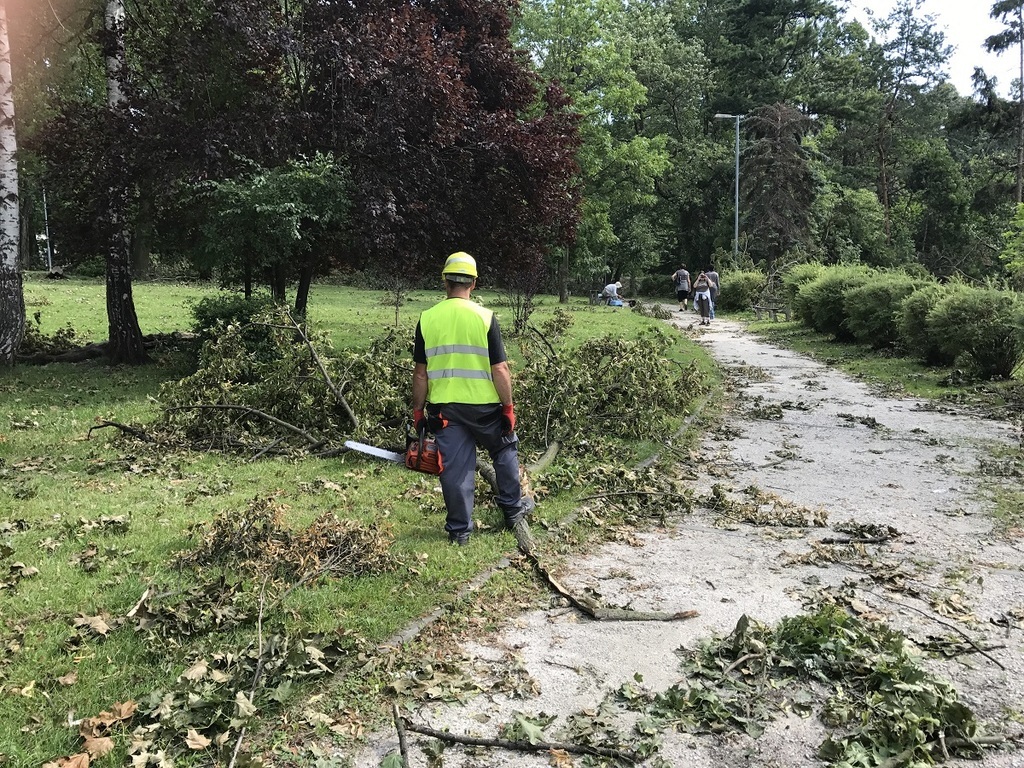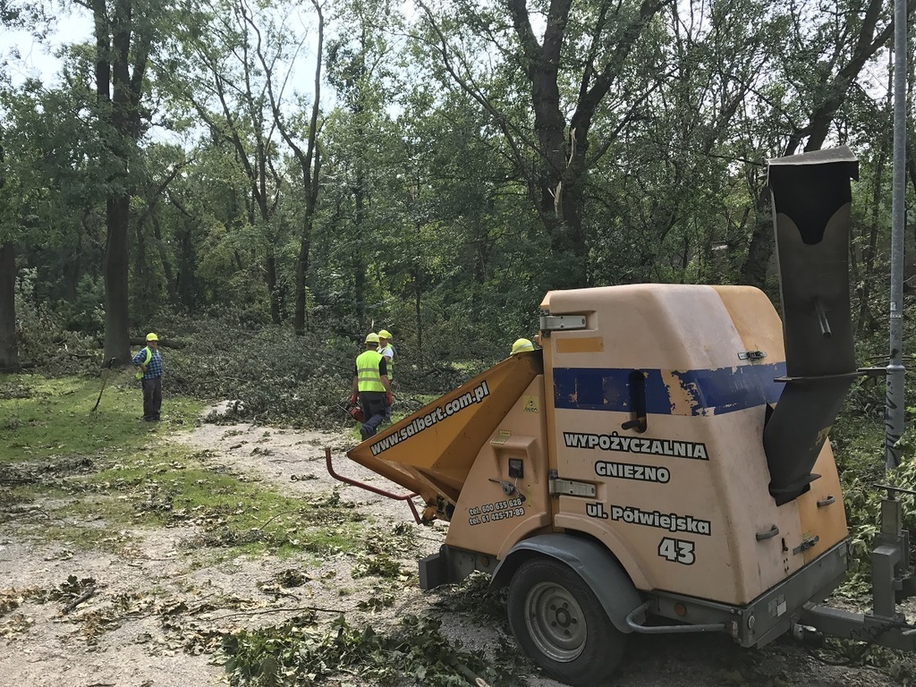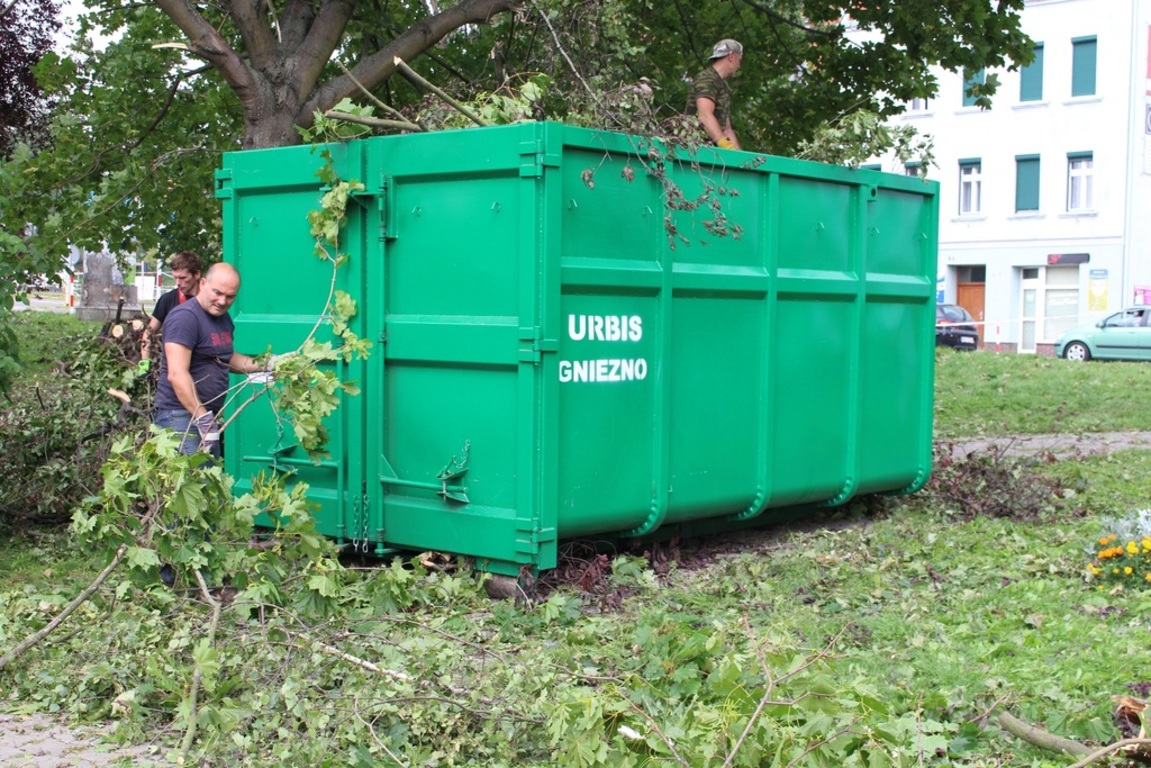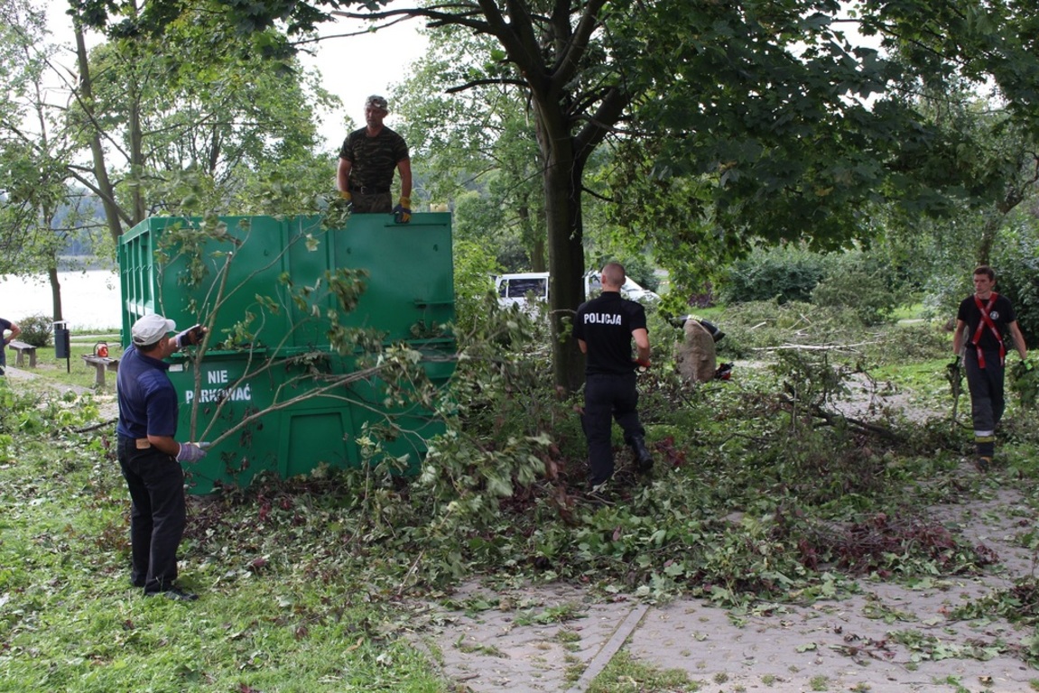 Miejskie służby, zorganizowane grupy ochotników a także poszkodowani mieszkańcy od soboty nieprzerwanie oczyszczają miasto ze zniszczeń po nawałnicy, która przeszła nad Gnieznem 11 sierpnia. Trwają także prace w Parku Miejskim przy ul. Sobieskiego, w parku Kościuszki. Zorganizowana grupa strażników miejskich, strażaków i policjantów porządkuje skwer Speyer przy jeziorze Jelonek.