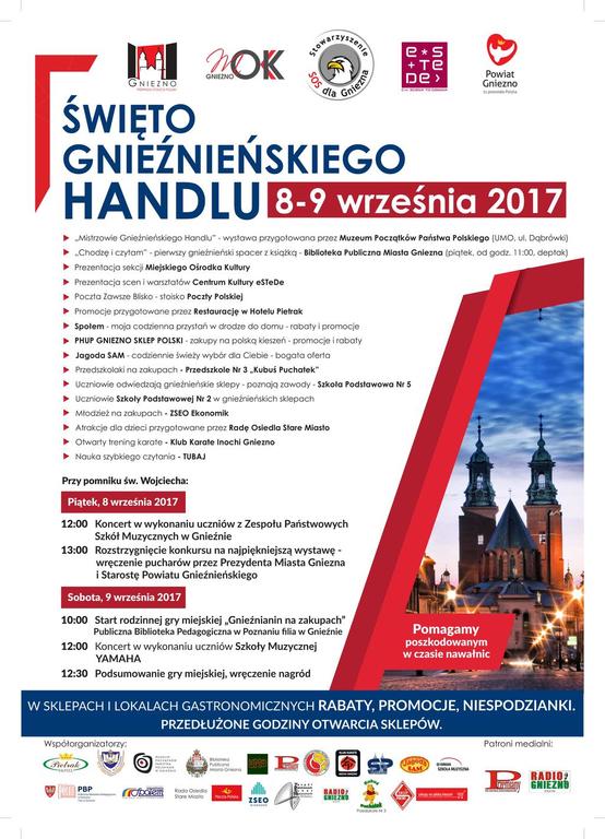 po raz pierwszy Święto Gnieźnieńskiego Handlu. Handlowcy zapraszają gnieźnian na specjalne zakupy w tych dniach. Zaoferują im rabaty, promocje i niespodzianki, a czas pracy sklepów przedłużą do 20.00 w piątek 8.09. i do 16.00 w sobotę 9.09.