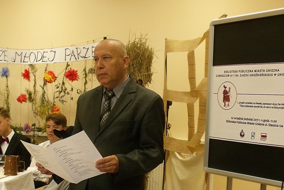 W liście inaugurującym Narodowe Czytanie 2017 Prezydent RP Andrzej Duda napisał: „Serdecznie zapraszam wszystkich Państwa do wspólnego czytania Wesela, do lektury, która wydobędzie różnorodność bohaterów, wyjątkową scenerię, bogactwo odniesień”. Na zaproszenie, jak co roku, odpowiedziała Biblioteka Publiczna Miasta Gniezna, realizując, we współpracy z Gimnazjum nr 1 im. Zjazdu Gnieźnieńskiego, imprezę Narodowego Czytania.
