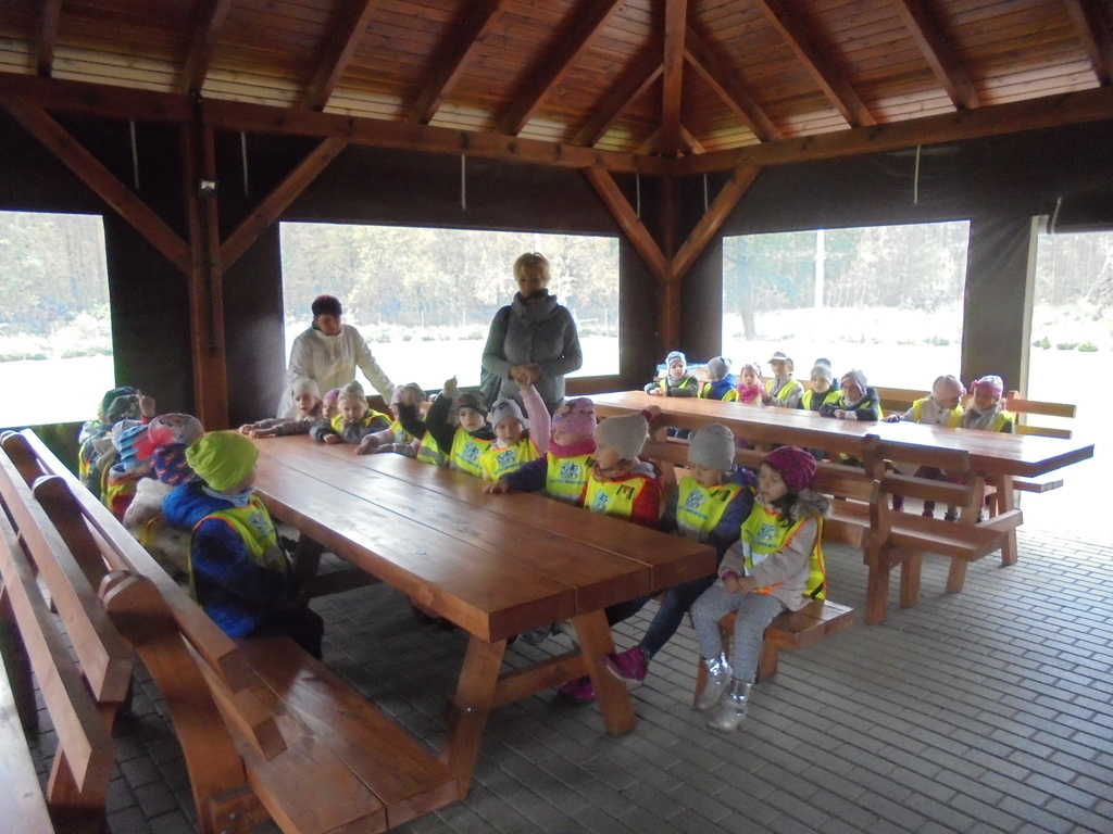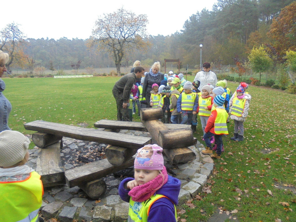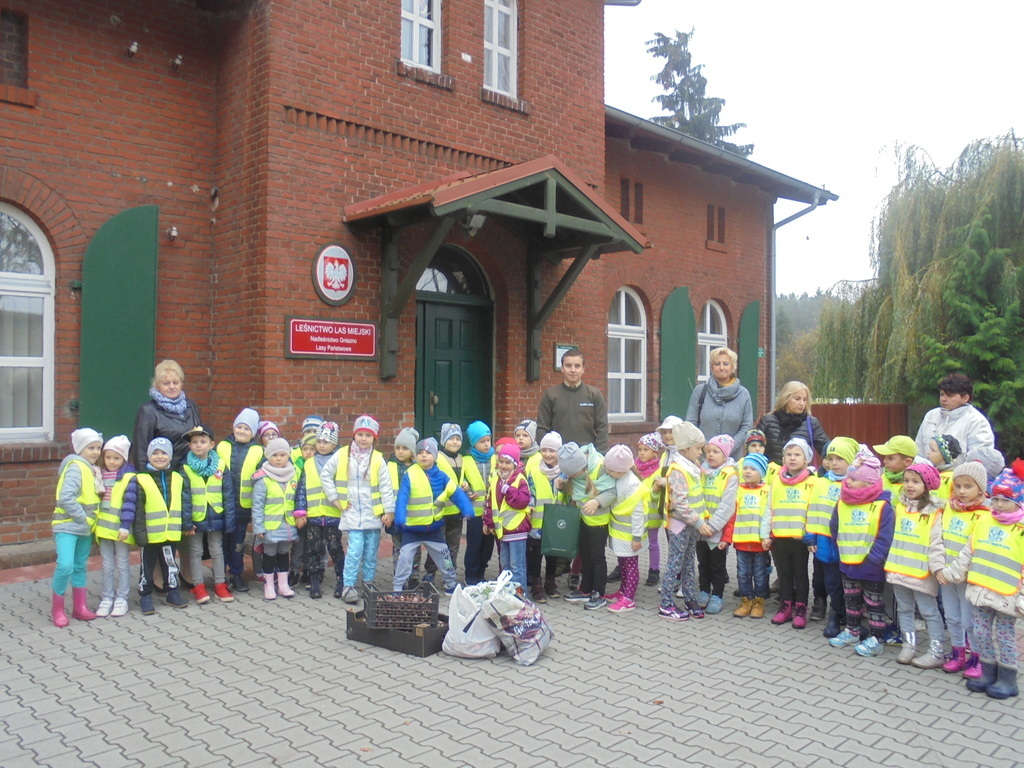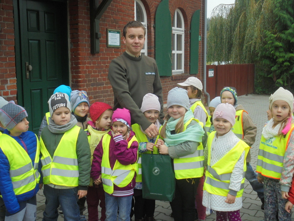 W wiacie edukacyjnej Gajówka dyskutowały z pracownikiem Nadleśnictwa na temat gatunków zwierząt mieszkających w naszych lasach, ich ulubionego pożywienia oraz zmian w wyglądzie i zachowaniu w zależności od pory roku poszerzając tym samym swoja wiedzę. Jesienna pogoda sprzyjała także edukacji przyrodniczo-leśnej, w trakcie której dzieci zapoznały się z florą i fauną lasu. Obserwowały i nazywały otaczające gatunki drzew dostrzegając charakterystyczne jesienią zmiany zabarwienia liści. Na zakończenie wycieczki przedszkolaki otrzymały od Nadleśnictwa Gniezno broszurki informacyjne do wspólnego czytania w przedszkolu na temat leśnego ekosystemu oraz przedmioty wyprodukowane z drewna-kredki, linijki. Zorganizowane działania miały na celu kształtowanie opiekuńczej postawy wobec zwierząt oraz utrwalenie właściwych nawyków dotyczących zasad zachowania się na terenie obszaru leśnego.