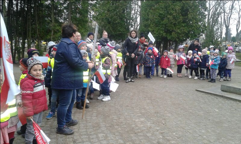 W uroczystościach wzięły udział również wyjątkowi goście: Powstańcy Wielkopolscy, dzieci z Niepublicznego Przedszkola Integracyjnego Mistrzowie Zabawy. Następnie dzieci z grupy Jeżyki, Liski, Zajączki oraz z Przedszkola Mistrzowie Zabawy przemaszerowały na cmentarz św. Piotra i Pawła w towarzystwie Powstańców Wielkopolskich celem uczczenia pamięć tych, którzy polegli w obronie naszej Ojczyzny.