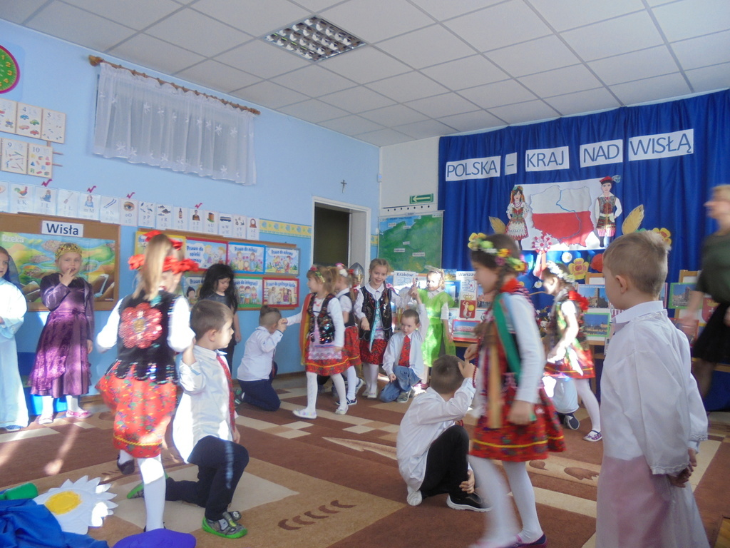 Następnie dzieci z oddziału IV Bratki pod kierunkiem Basi Pisarek i Ani Polerowicz przedstawiły „Legendę o powstaniu Wisły” wprowadzając wszystkich w tematykę wiślaną. Potem nastąpiły prezentacje wierszy i piosenek o Polsce, Wiśle i miastach nad nią leżących przez uczestników, które były nagradzane gromkimi oklaskami. Konkurs przeplatano zabawami ruchowo-naśladowczymi pod hasłem „Z biegiem Wisły”. Już poza konkursem dzieci rozwiązywały quizy, zagadki muzyczne przybliżające wiadomości o Polsce, a inspirowane również wysłuchanymi piosenkami i poezją. Uczestnicy konkursu byli przebrani stosownie do wykonywanego repertuaru.