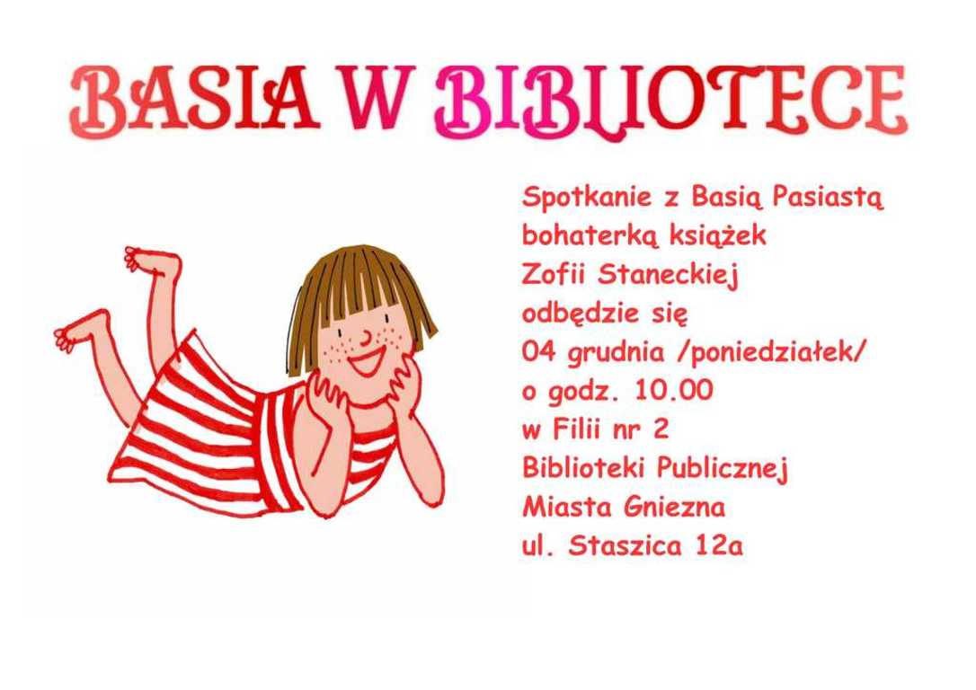 Na spotkanie z kolejną książką „Basia w bibliotece” zapraszamy 4 grudnia 2017 /poniedziałek/ o 10.00 do Filii nr 2 gnieźnieńskiej książnicy przy ul. Staszica 12a.