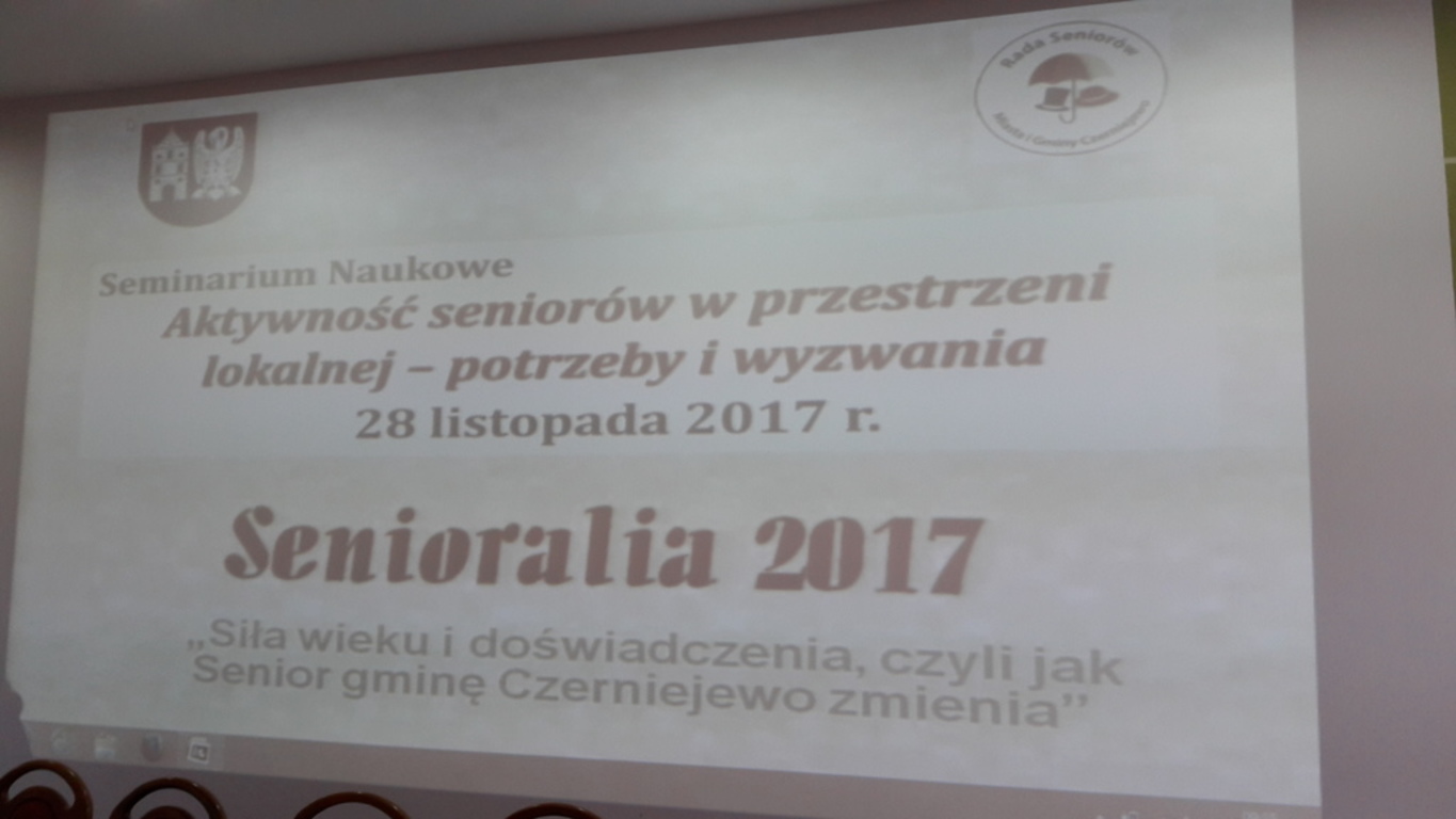 28 listopada 2017 w Sali Sesyjnej Urzędu Miasta i Gminy Czerniejewo odbyło się Seminarium naukowe „Aktywność seniorów w przestrzeni lokalnej – potrzeby i wyzwania”, w którym uczestniczyli przedstawiciele Miejskiej Rady Seniorów w Gnieźnie. Było to wydarzenie wpisujące się w plan czerniejewskich Senioraliów 2017 pod hasłem „Siła wieku i doświadczenia, czyli jak Senior gminę Czerniejewo zmienia”.