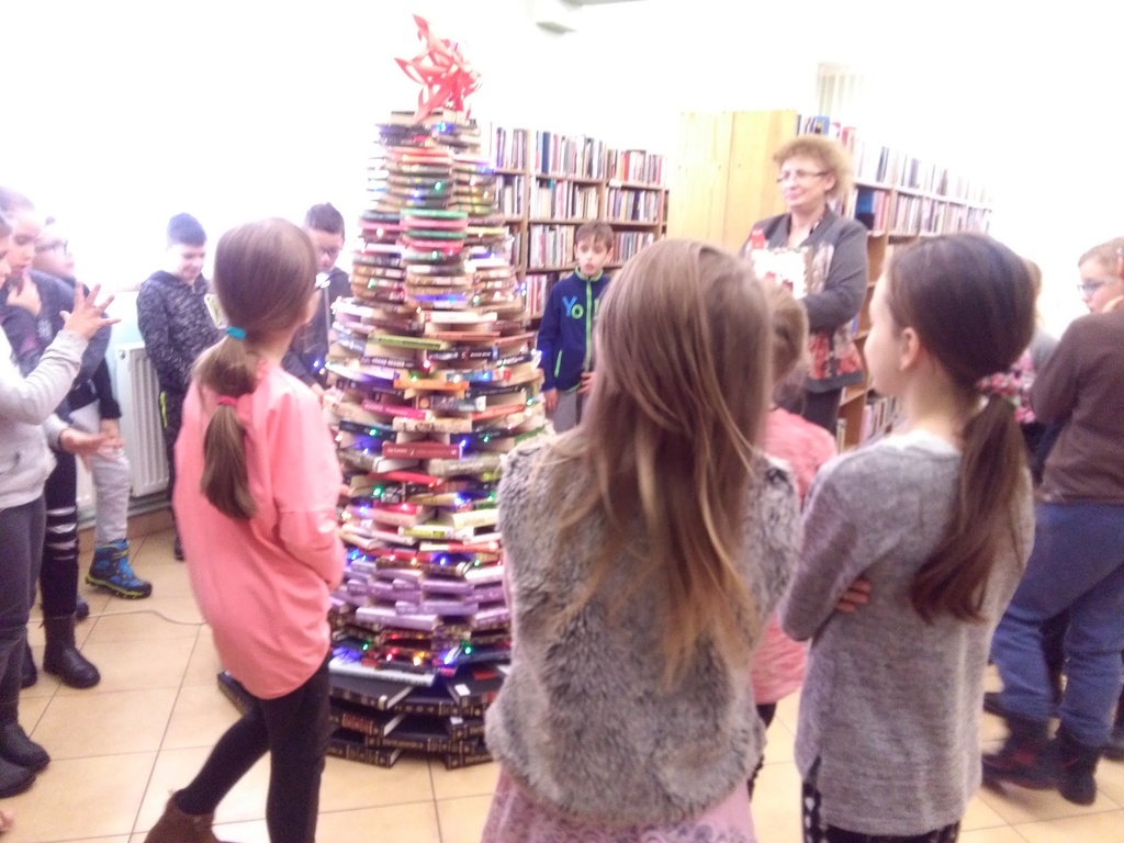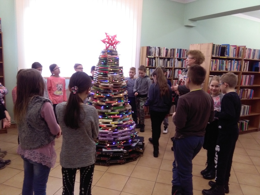 Budowano, Budowano, aż zbudowano choinkę z książek w Filii nr 2 Biblioteki Publicznej Miasta Gniezna przy ul. Staszica 12a. Odwiedzający tą gnieźnieńską książnicę, będą mogli zobaczyć z jakich książek powstało świąteczne drzewko. Można w nim znaleźć książki naukowe, biografie, klasykę literatury polskiej i obcej, współczesne romanse i kryminały. Jednak oglądając choinkę nie można od razu policzyć, z ilu książek została zbudowana. Tak się składa, że niewidoczne wnętrze też zostało wypełnione książkami. Można oczywiście zastosować do obliczeń reguły matematyki i prawa fizyki, ale czy nie lepiej po prostu zgadnąć?