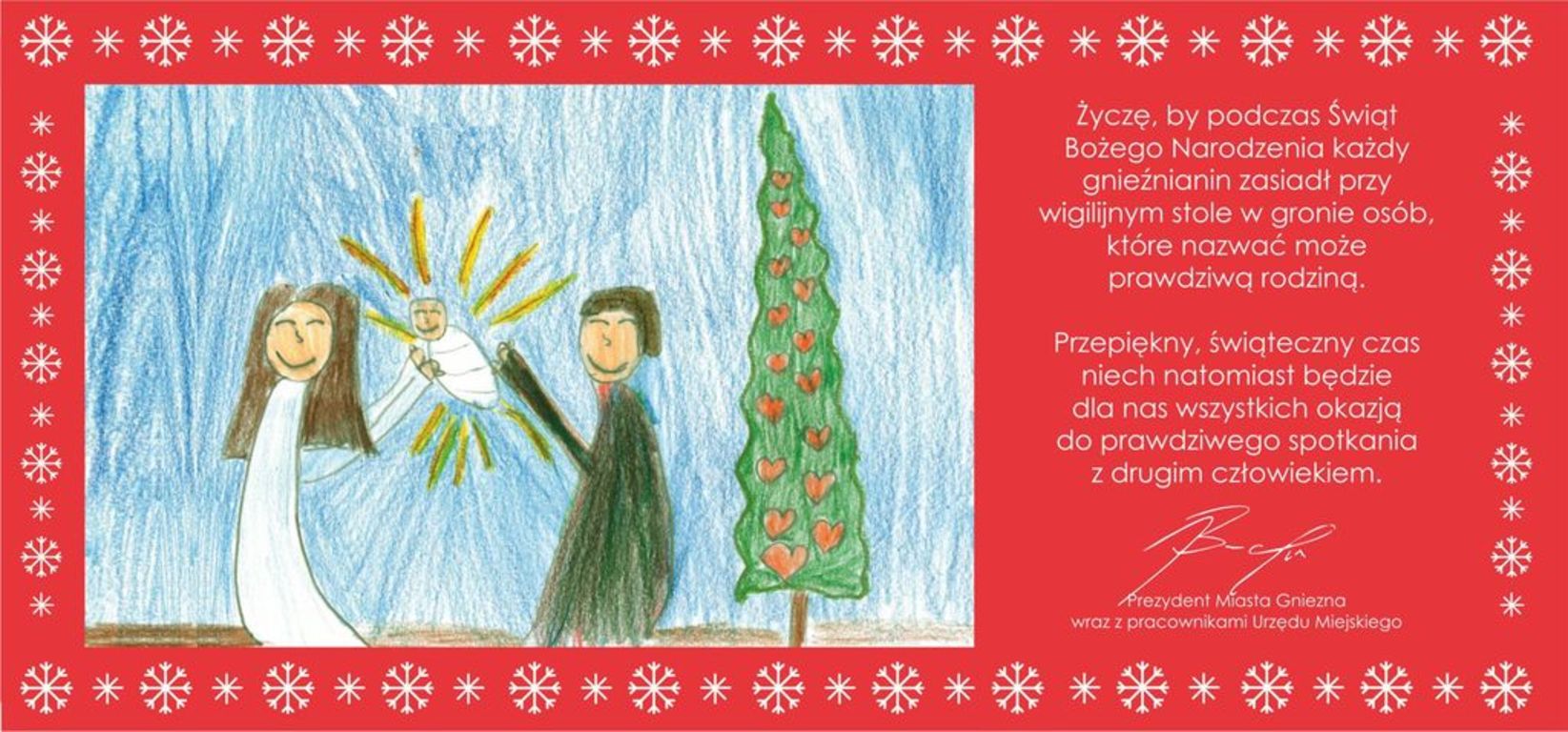 Projekt na podstawie zwycięskiego rysunku w konkursie na świąteczną kartkę Miasta Gniezna.