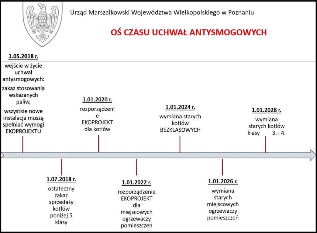 Radni Sejmiku Województwa Wielkopolskiego przyjęli 18.12.2017r. trzy uchwały antysmogowe dla obszaru Poznania, Kalisza i strefy wielkopolskiej, które wejdą w życie 1 maja 2018 r. W związku z tym, za kilka miesięcy zacznie obowiązywać zakaz stosowania najgorszej jakości paliw stałych na terenie całego województwa wielkopolskiego. Ponadto, wprowadzone zostaną ograniczenia dla kotłów oraz miejscowych ogrzewaczy, np. kominków i pieców.