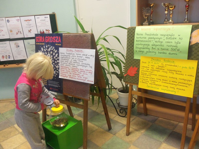 Między 27 listopada 2017 a 2 stycznia 2018 w Przedszkolu Nr 9 w Gnieźnie przeprowadzona została akcja „Góra grosza”. Jej celem było zebranie funduszy na pomoc dzieciom wychowującym się poza własną rodziną.