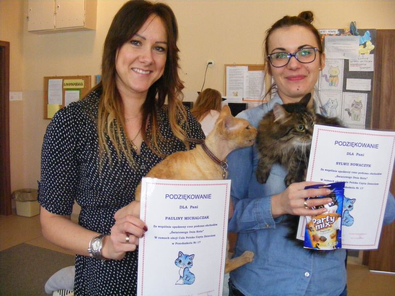 Dzieci z Przedszkola nr 17 „Piastowska Gromada” obchodziły nietypowe święto „Święto kota”. W tym dniu wszystkie przedszkolaki upodobniły się do swoich czworonożnych przyjaciół, zakładając kocie stroje oraz dorysowując sobie wąsy. Do przedszkola zawitały też prawdziwe koty Rysia i Dżodżo wraz ze swoimi opiekunkami Sylwią Nowaczyk i Pauliną Michalczak.