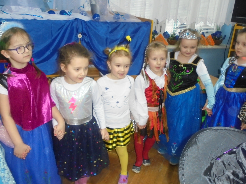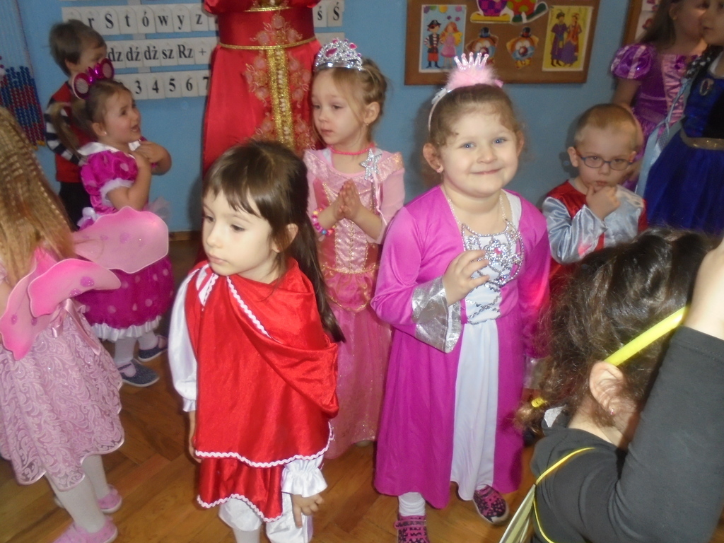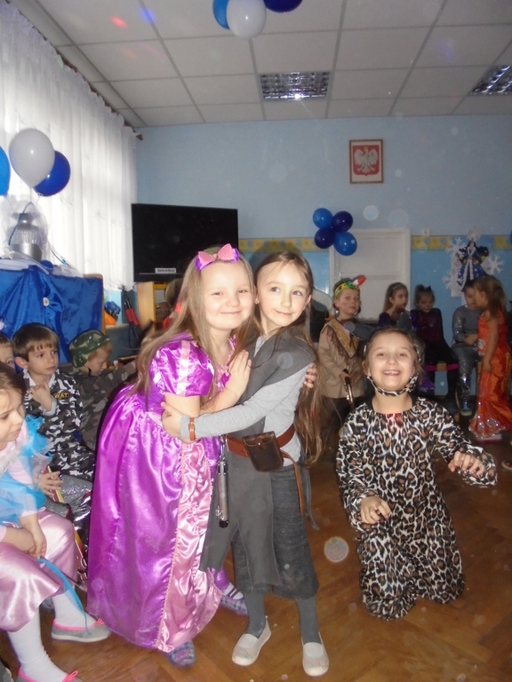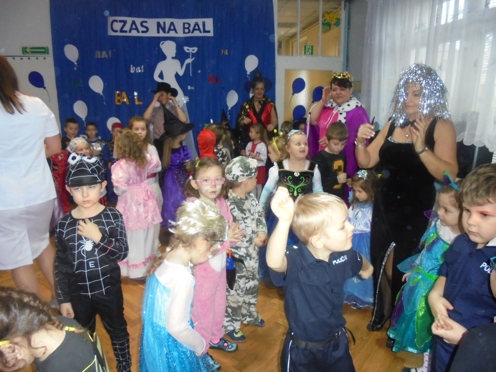 Bardzo zgrabnie i z gracją podrygiwały księżniczki i królowe, elegancko przytupywali żołnierze, Indianie i piraci. Pięknie w tańcu wirowały pszczółki i motyle, a myszki, koty, zajączek i tygrys bawili się w najlepsze w dobrej komitywie. Nad bezpieczeństwem tańczących czuwała Eko-policjantka (Dyrektor Ilnicka) oraz jej asystenci Adaś i Gabryś, którzy są obrońcami zwierząt, a przypominał wszystkim Scubi z krawacika. Nie zabrakło też pamiątkowych fotografii wszystkich grup. Do tańca przygrywał wszystkim DJ Qest – tatuś Marysi i Szymka, któremu serdecznie dziękujemy!