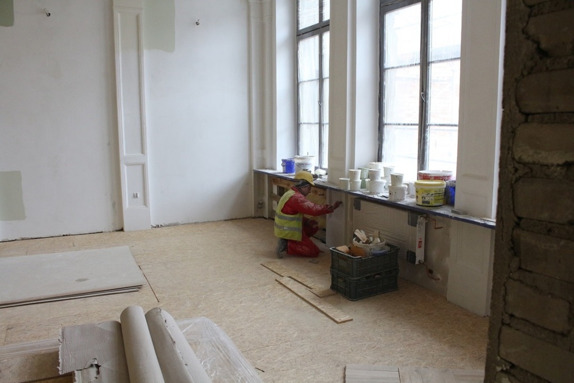 Obecnie prowadzone są prace w segmentach A, B i D, w których do tej pory wykonano: remont elewacji oraz dachów (nowe poszycie, dachówka, klapy dymowe), renowację i wymianę stolarki okiennej; wymianę instalacji elektrycznej, niskoprądowej); c.o., wodociągowej i sanitarnej; montuje się instalację wentylacyjno-klimatyzacyjną; serwerownię dla całego budynku.