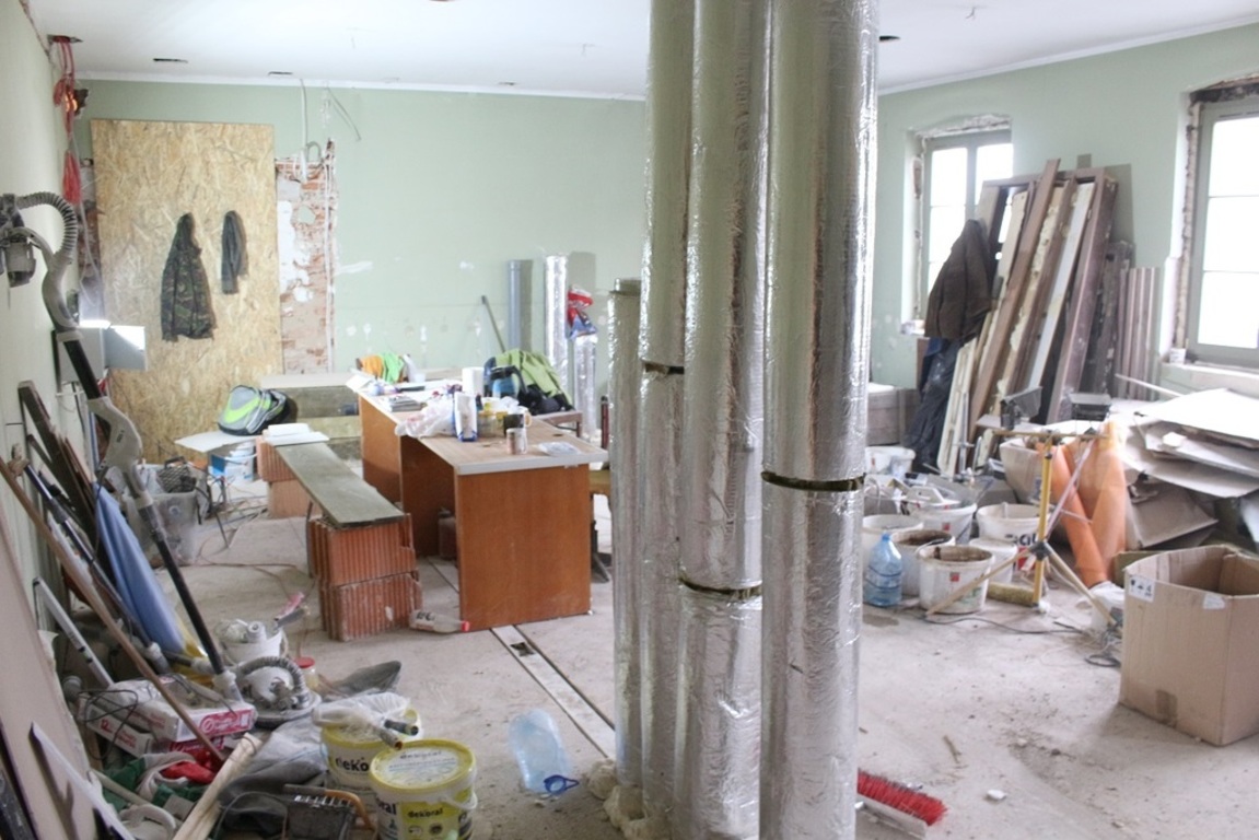 - Renowacja ścian i sufitów, prace związane z położeniem nowej podłogi na I piętrze