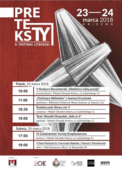 …do obcowania z Literaturą! Spotkania autorskie, slam poetycki oraz nietuzinkowe koncerty, to tylko niektóre z pozycji programu tegorocznego Festiwalu Literackiego „Preteksty”. VIII edycja festiwalu potrwa od 23 do 24 marca.