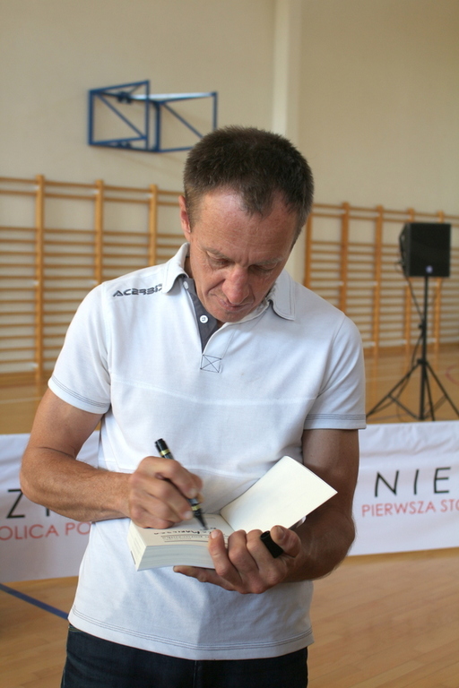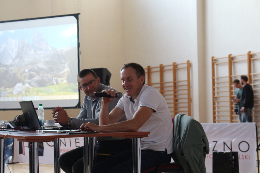 Wspinacz do Pierwszej Stolicy przyjechał ze swoim kolegą Bogusławem Magrelem, prezesem Polskiego Klubu Alpejskiego. Dwugodzinne spotkanie ze sportowcami, podobnie jak w przypadku Adama Bieleckiego, odbyło się w hali Szkoły Podstawowej, gdzie ponownie zebrało się prawie pięćset osób. Zobaczyć mogli oni liczne filmiki z kolejnych wypraw w góry oraz z przygotowań do następnych podbojów. Sporo miejsca poświęcono też funkcjonowaniu wspomnianego już Polskiego Klubu Alpejskiego oraz działalności społecznej obu sportowców. Szkolą oni bowiem w trudnej sztuce wspinaczki młodych adeptów, wyznaczają w górach nowe drogi i oznaczają zaniedbane szlaki w całej Europie.