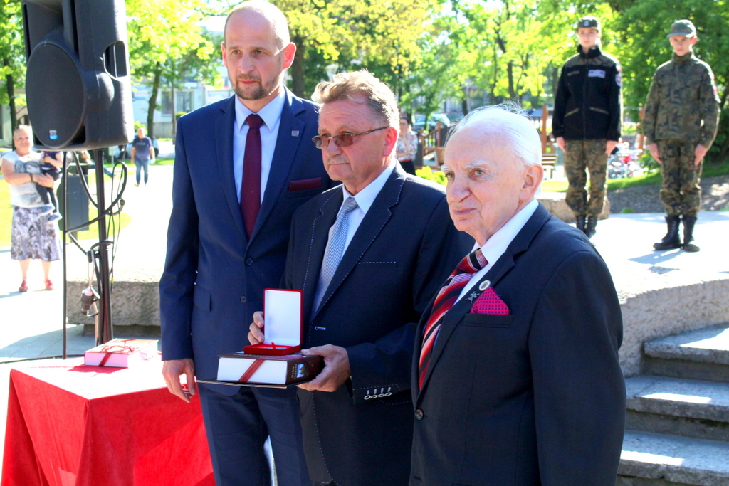 Oprócz odśpiewania Hymnu Państwowego oraz krótkiego przemówienia prezydenta Budasza, przypominającego czas kapitulacji III Rzeszy, oraz dalsze losy narodu polskiego, wręczony został również Medal Koronacyjny dla Włodzimierza Maciejewskiego. Jak we wniosku o przyznanie medalu wskazało Towarzystwo Miłośników Lwowa i Kresów Południowo-Wschodnich, od początku działalności Towarzystwa W. Maciejewski przekazywał na jego rzecz nieodpłatnie duże ilości obuwia produkowanego przez firmę „Maciejka” której jest właścicielem. Trafiało ono do dzieci, młodzieży a także osób dorosłych zamieszkujących w Parafii Strzelczyska jak i we Lwowie. Medal Koronacyjny został wręczony z tytułu wieloletnich działań na rzecz pomocy Polakom w kraju i za granicą.