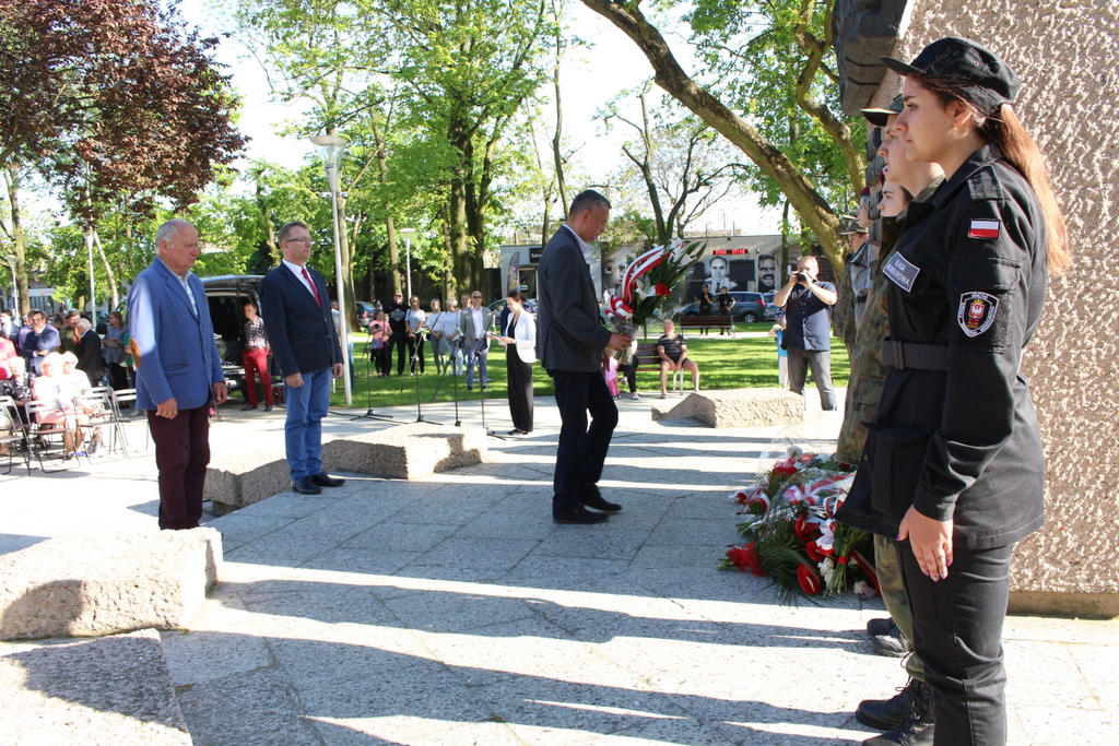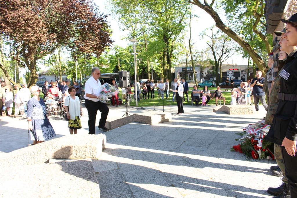 Na zakończenie uroczystości, po złożeniu przez delegacje wiązanek kwiatów, wspólnie odśpiewano Rotę.