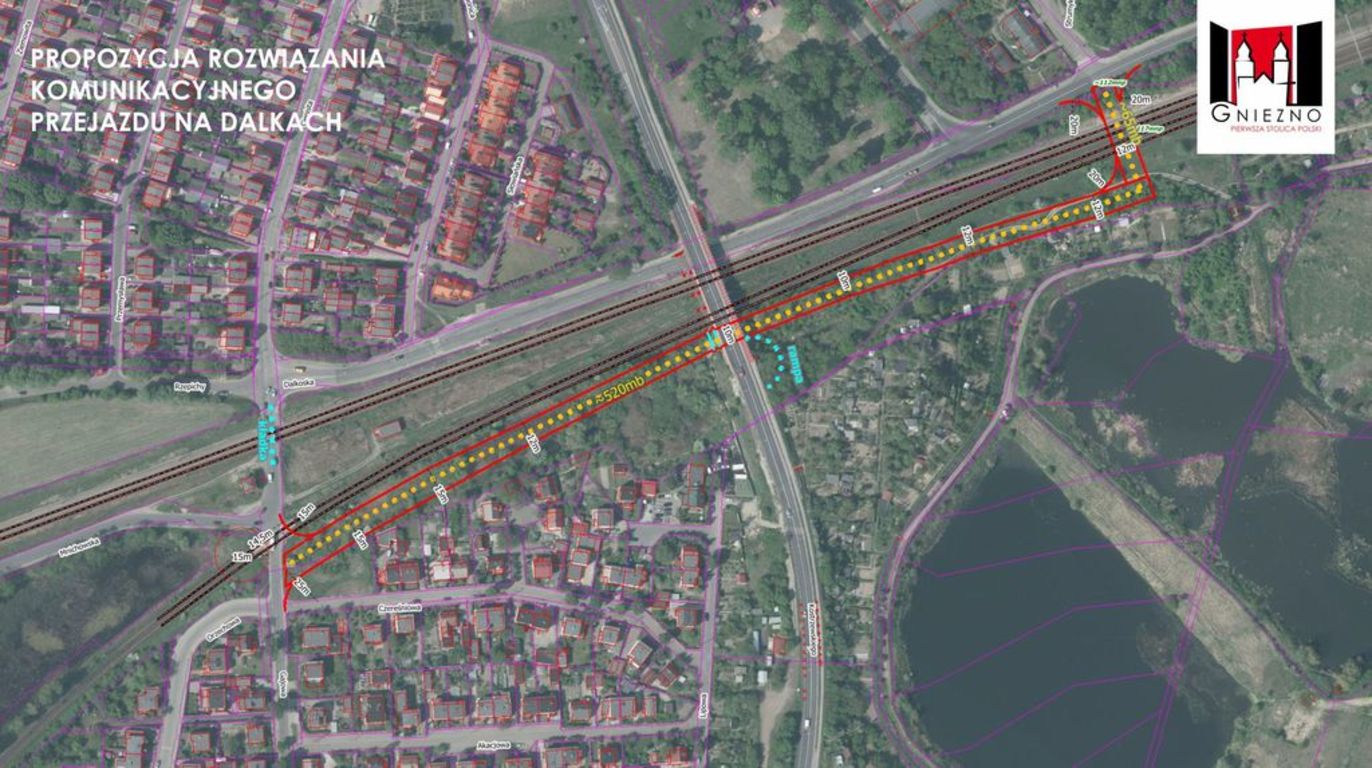 Od wielu lat w Gnieźnie istnieje problem komunikacyjny związany z utrudnionym ruchem przez przejazdy na gnieźnieńskich Dalkach. W ostatnim czasie w Starostwie Powiatowym powstało kilka pomysłów na jego rozwiązanie. Przedstawione koncepcje powstały jednak z myślą tylko o mieszkańcach gminy Gniezno i gminy Czerniejewo, na drugim planie zostawiając mieszkańców Gniezna, szczególnie osiedla Dalki. We wszystkich projektach proponuje się bowiem zamknięcie przejazdu kolejowego w kierunku Poznania i pozostawienie przejazdu w kierunku Wrześni. Dlatego też Miasto Gniezno wychodzi z nową propozycją rozwiązania tego problemu pamiętając o wszystkich użytkownikach dróg.